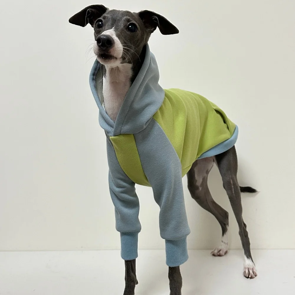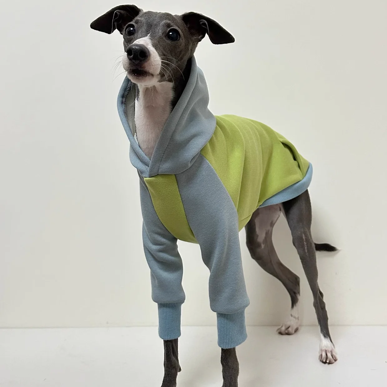 Soft Green Fleece Coat for Huibit Dog Clothes Elastic Spring Autumn Sweatshirt for Bedlington Little Greyhound Hooded Pajamas