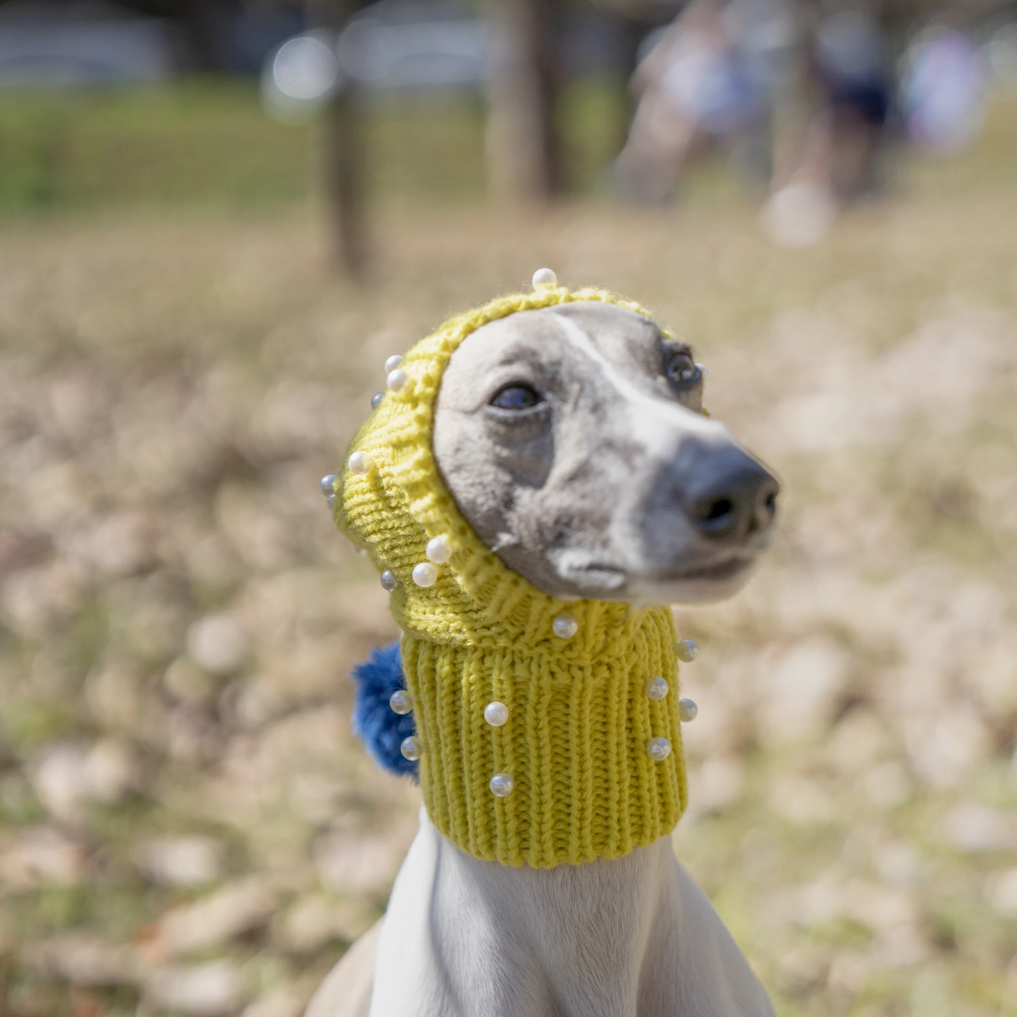 Sombrero de perro, amarillo con perlas, sombrero de perro pequeño, de Whitbit galgo, decoración de calor de invierno, sombrero de perro grande