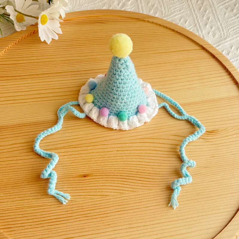 Sombrero de cumpleaños para Gato, vestido de fiesta para mascotas, decoración de fotos, cuello de perro, bonito conjunto hecho a mano, accesorios para perros pequeños y cachorros