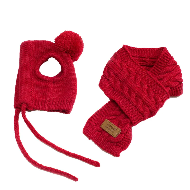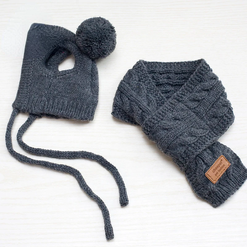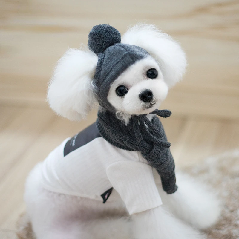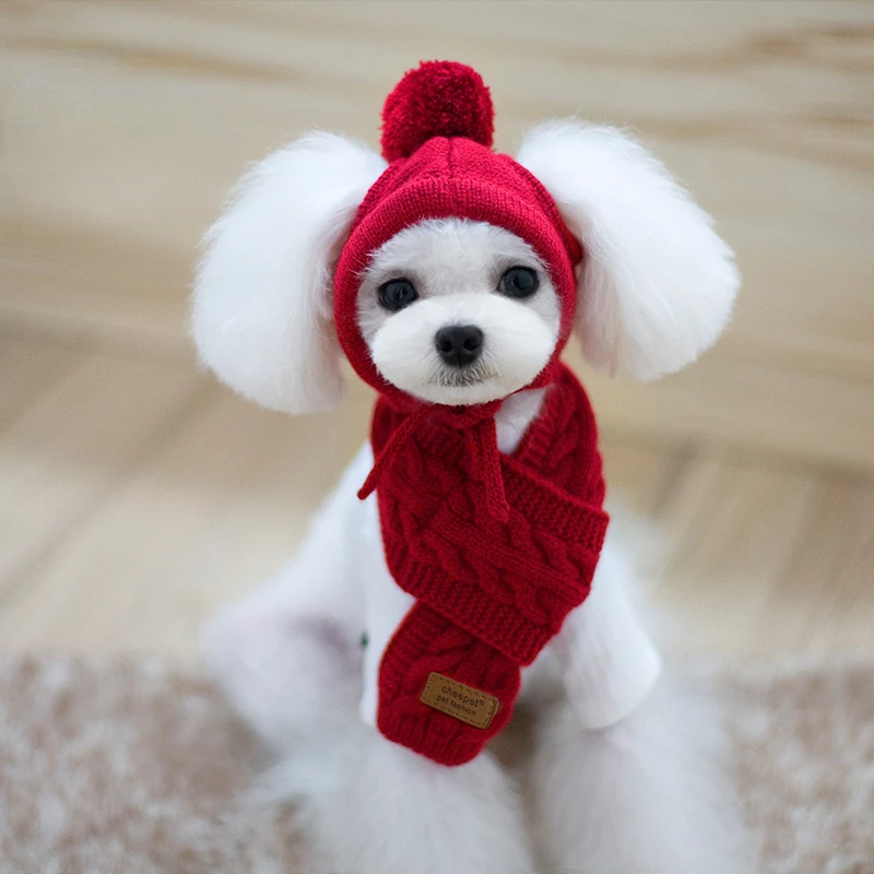 Sombrero de hilo de oreja con fugas para mascotas, suministros de Petd, Bola de hilo de Color sólido para mascotas, bufanda para cachorros, sombreros de Navidad, accesorios para perros, Otoño e Invierno
