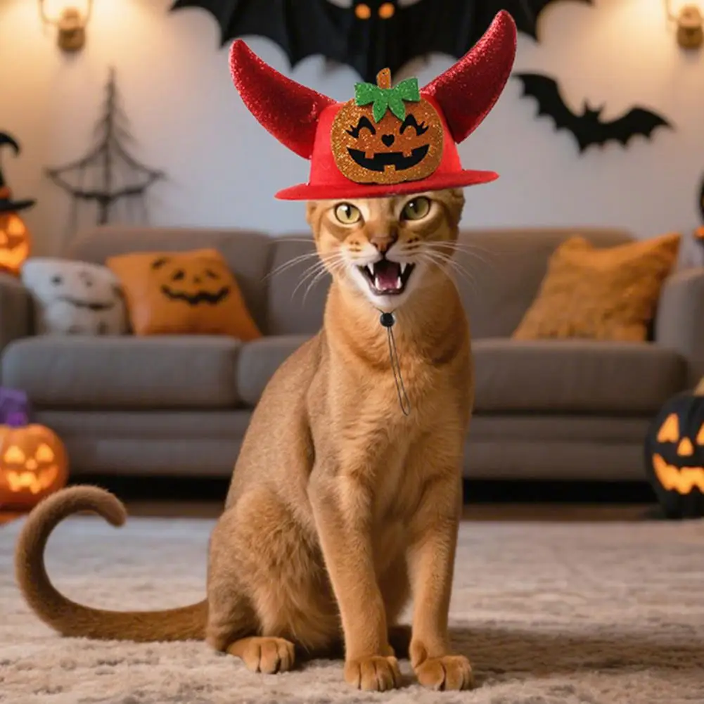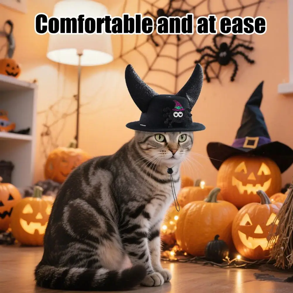 Sombrero para mascotas de Halloween, sombrero Formal para gatos con cuernos, sombrero de araña de calabaza, tocado ajustable para perros pequeños y gatos, accesorio de disfraz navideño
