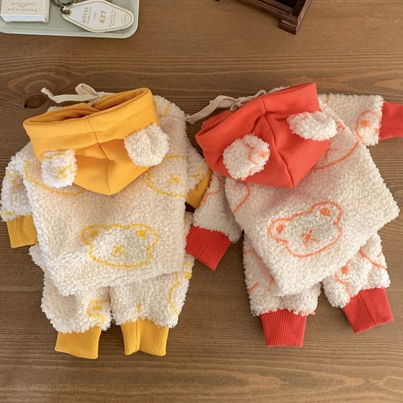 Sombrero para mascotas, ropa de cuatro patas, franjas de diferente Color, abrigo de empalme de lana de cordero, oso de peluche, ropa para perros pequeños VIP, ropa para cachorros de otoño