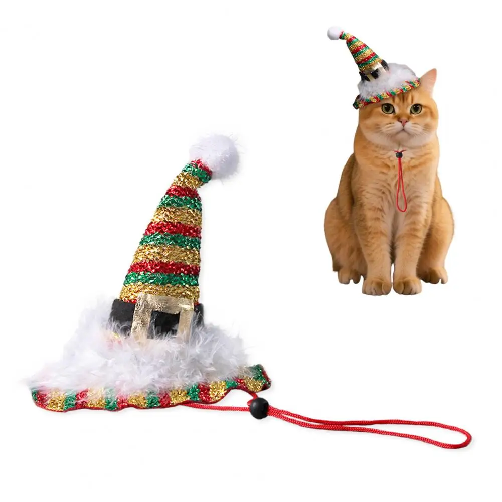 Sombrero de Navidad para gatos, sombrero de Navidad dorado brillante para mascotas, sombrero para cachorros con plumas para gatos y perros pequeños, accesorio fotográfico, disfraz festivo