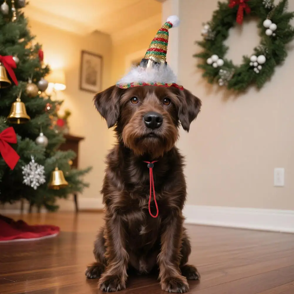 Estilo navideño festivo: con su color dorado brillante y su diseño clásico de sombrero navideño, este accesorio eleva instantáneamente el atuendo de su mascota, integrándola perfectamente con el espíritu navideño en casa.