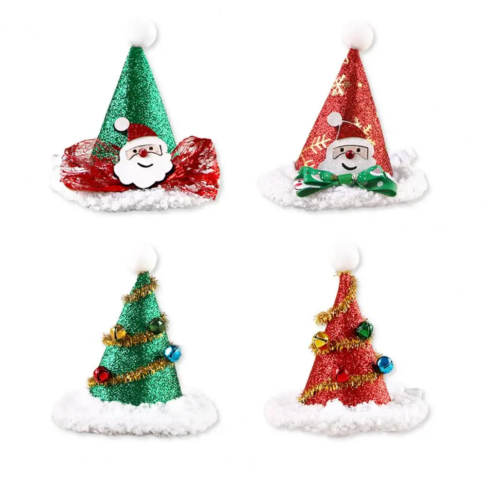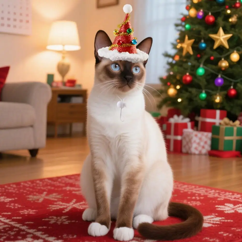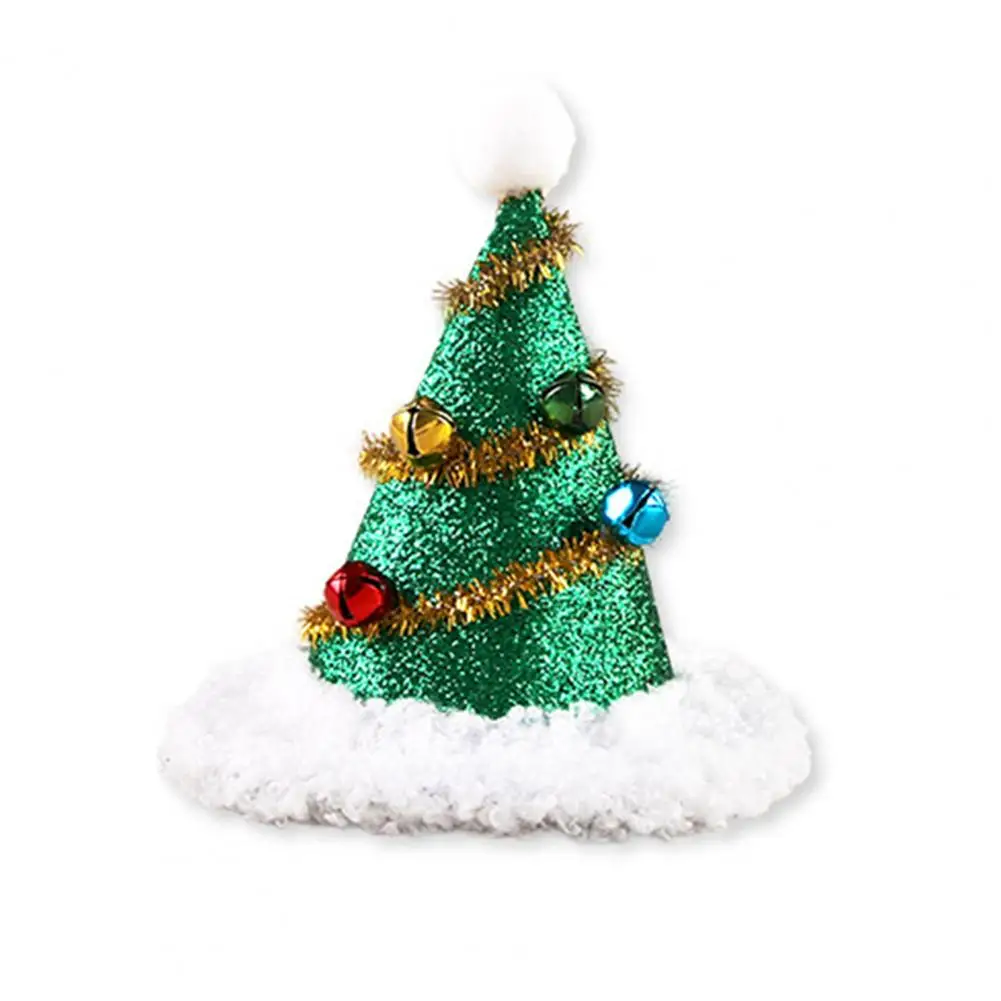 Gorro de Navidad para mascotas, gorro de árbol de Navidad con pompón y campanas, gorro de Papá Noel con purpurina para gatos y perros, disfraces para fiestas navideñas