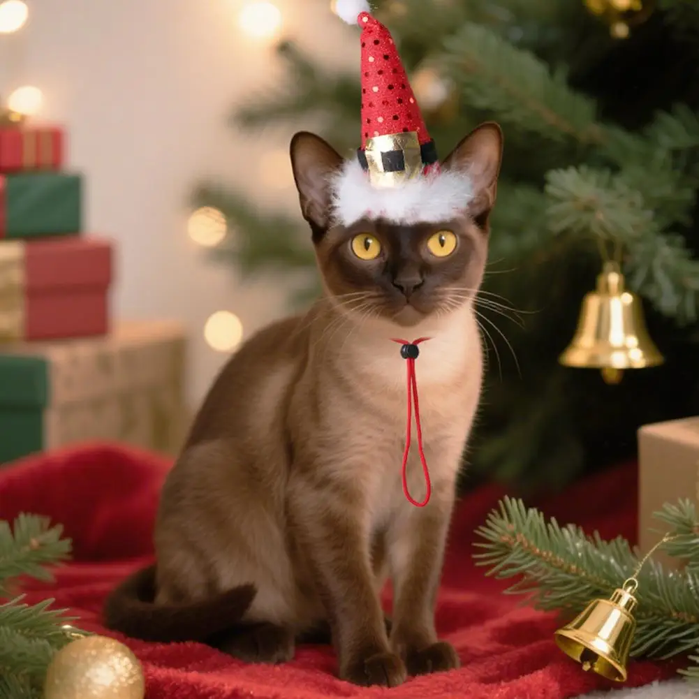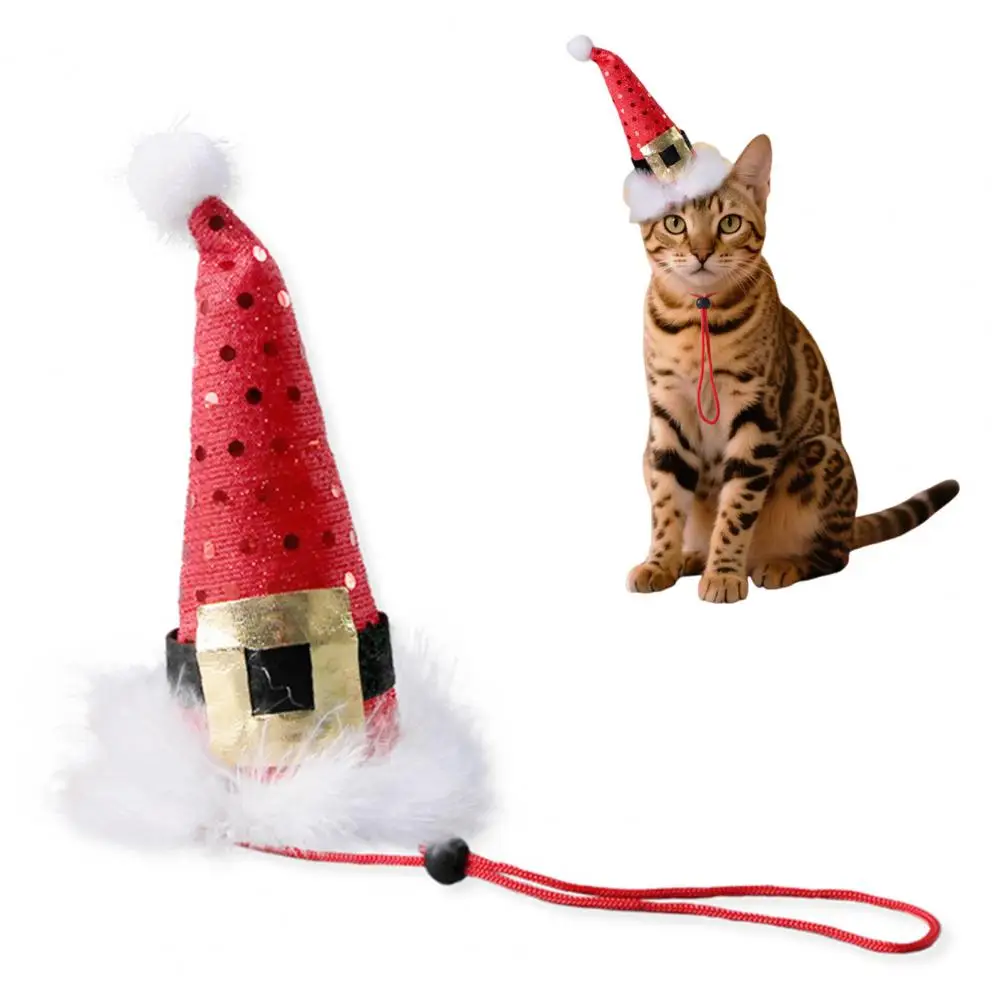 Gorro navideño para mascotas, gorro rojo de Navidad para gatos, gorro de Papá Noel con lunares brillantes para gatos y perros, accesorio de fotografía festivo