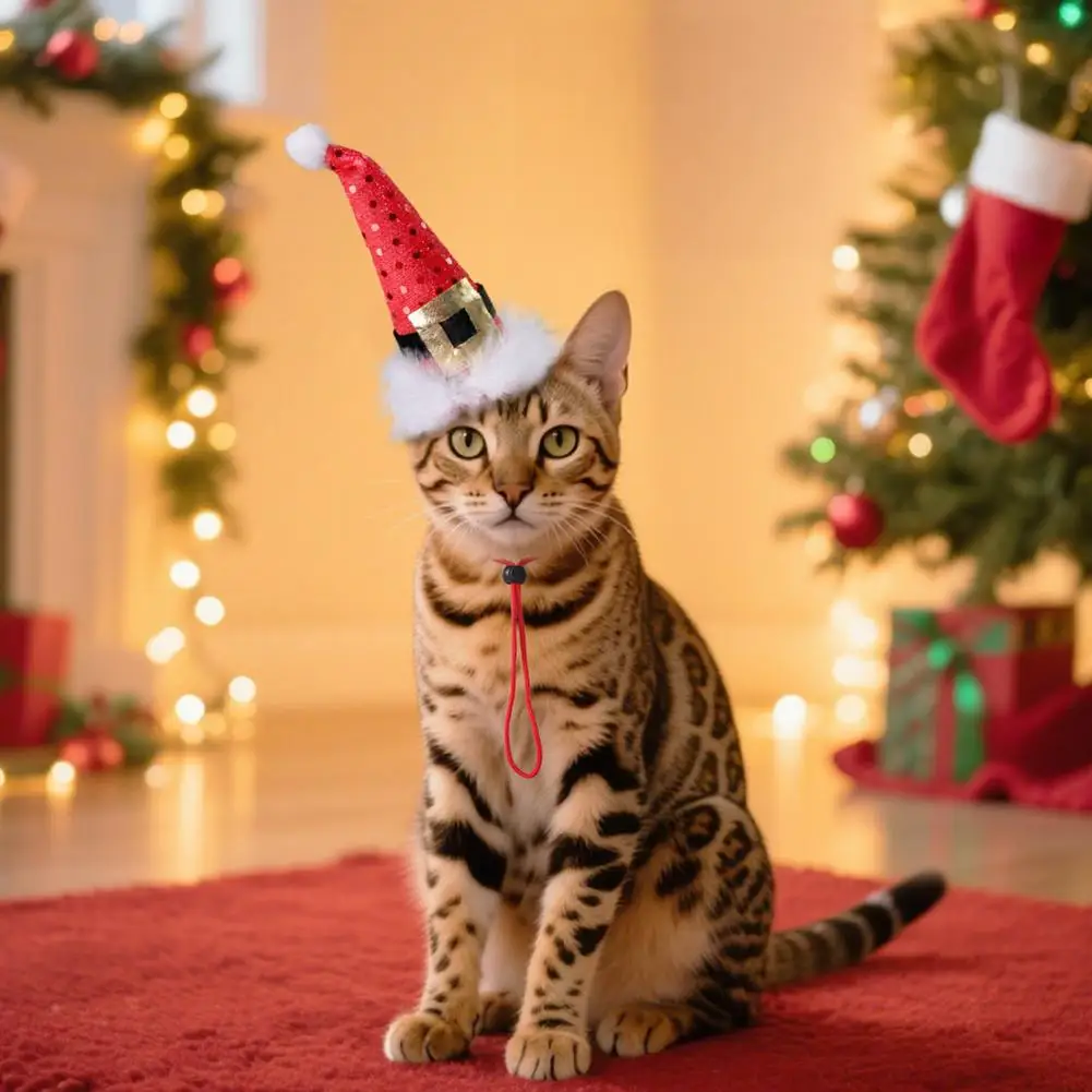 Ajuste universal para gatos y perros: Diseñado para acomodar tanto gatos ágiles como perros animados, este sombrero ajustable garantiza un ajuste cómodo tanto para mascotas pequeñas como para perros medianos.Deje que sus compañeros peludos se unan al espíritu navideño con facilidad.