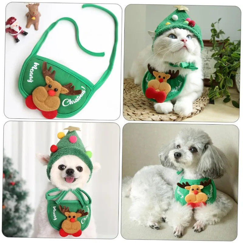 Sombrero navideño para mascotas, toalla de Saliva con cuernos bonitos para perros y gatos, suministros de vestir, diseño encantador, ropa de otoño e invierno, accesorio para mascotas