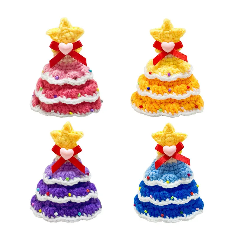 Sombrero navideño hecho a mano para mascotas, 4 colores, hilo de árbol de Navidad de ganchillo, accesorio festivo para gatos, perros, decoración navideña