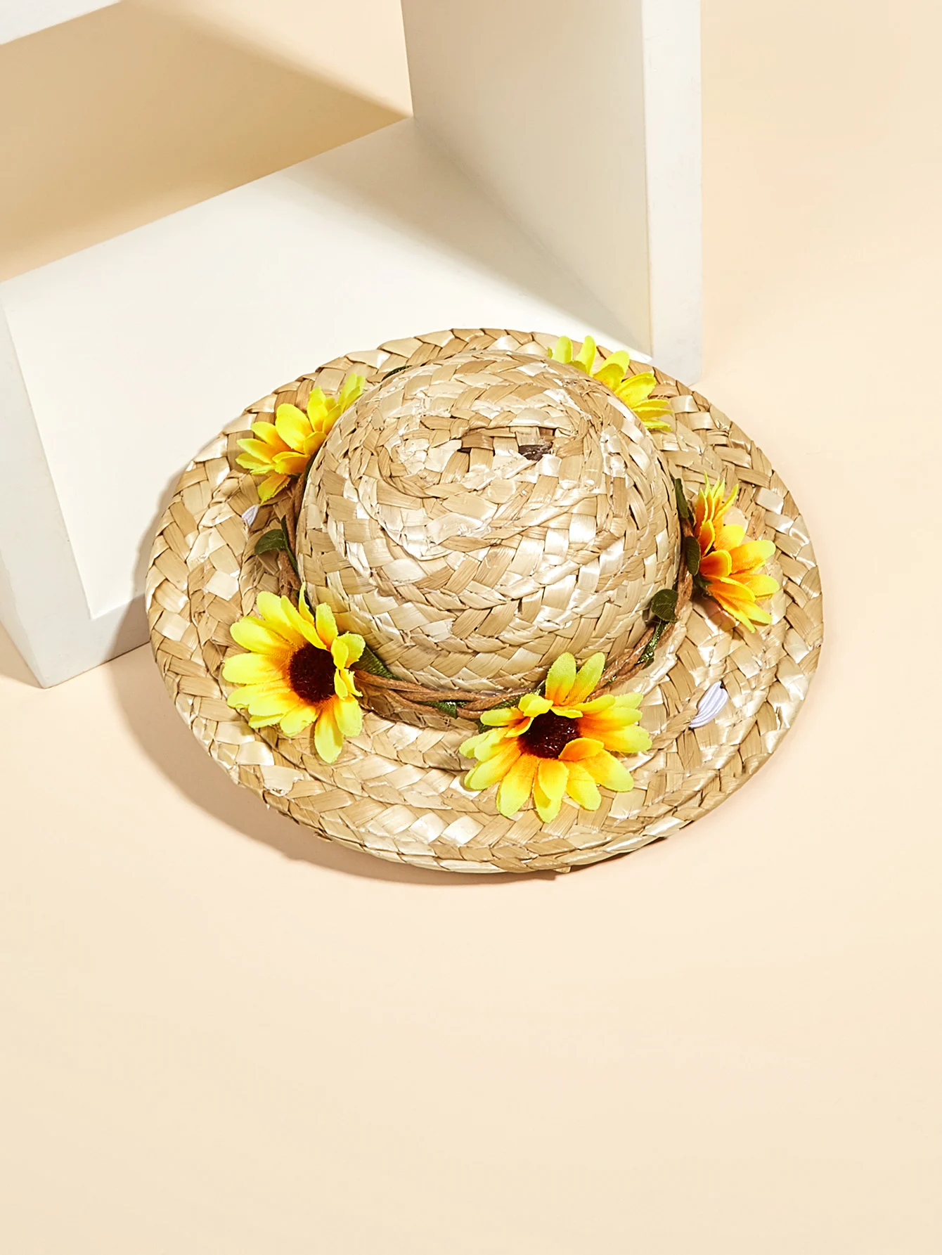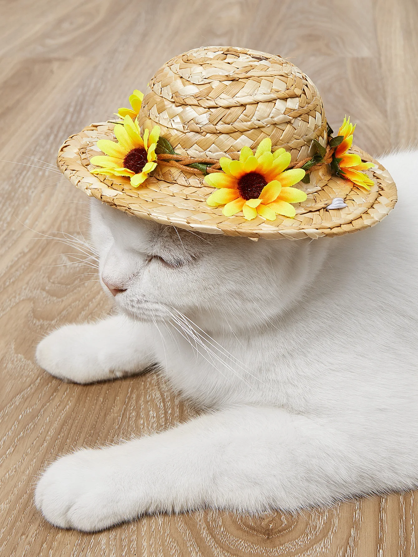 Sombrero de paja de girasol para gatos, gorra de sol hecha a mano, accesorios para fotografía de perros pequeños y gatos