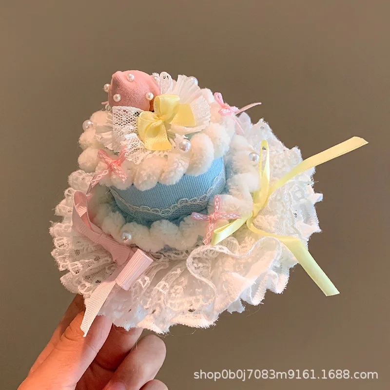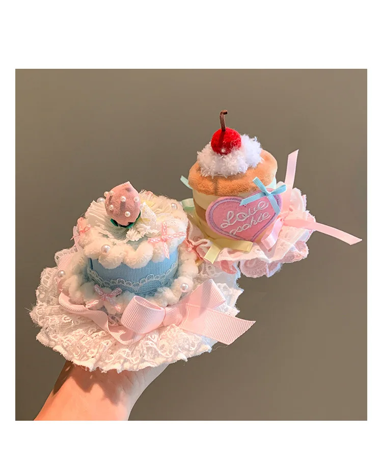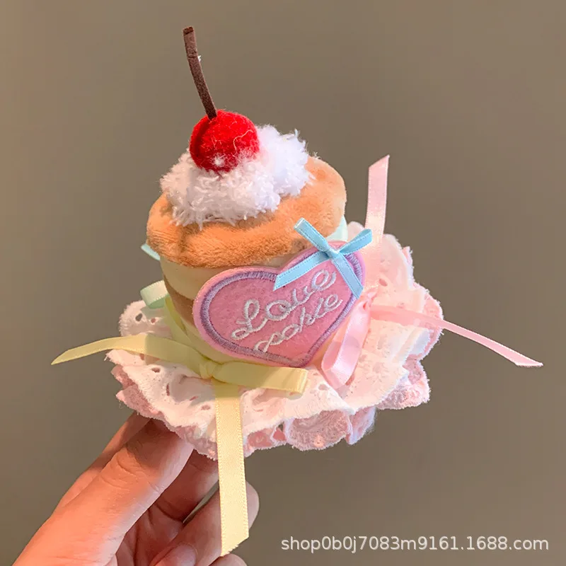 Sombrero de pastel de cereza rosa para mascotas, horquilla para perro, accesorios de decoración para fotos de fiesta, sombreros de cumpleaños, accesorios para cachorros