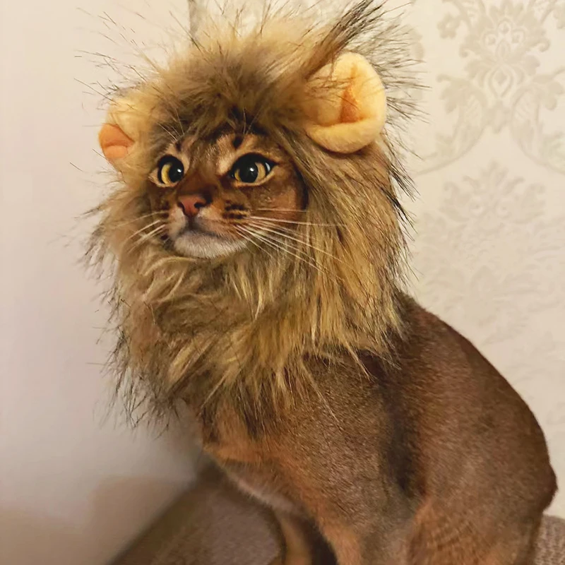 Peluca de gato, sombrero para perros pequeños, gatos, mascotas, Halloween, Cosplay, León, ropa creativa, accesorios, divertido gatito, sombrero, bufanda de Yorkshire