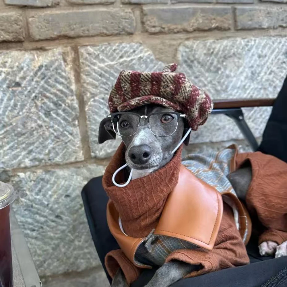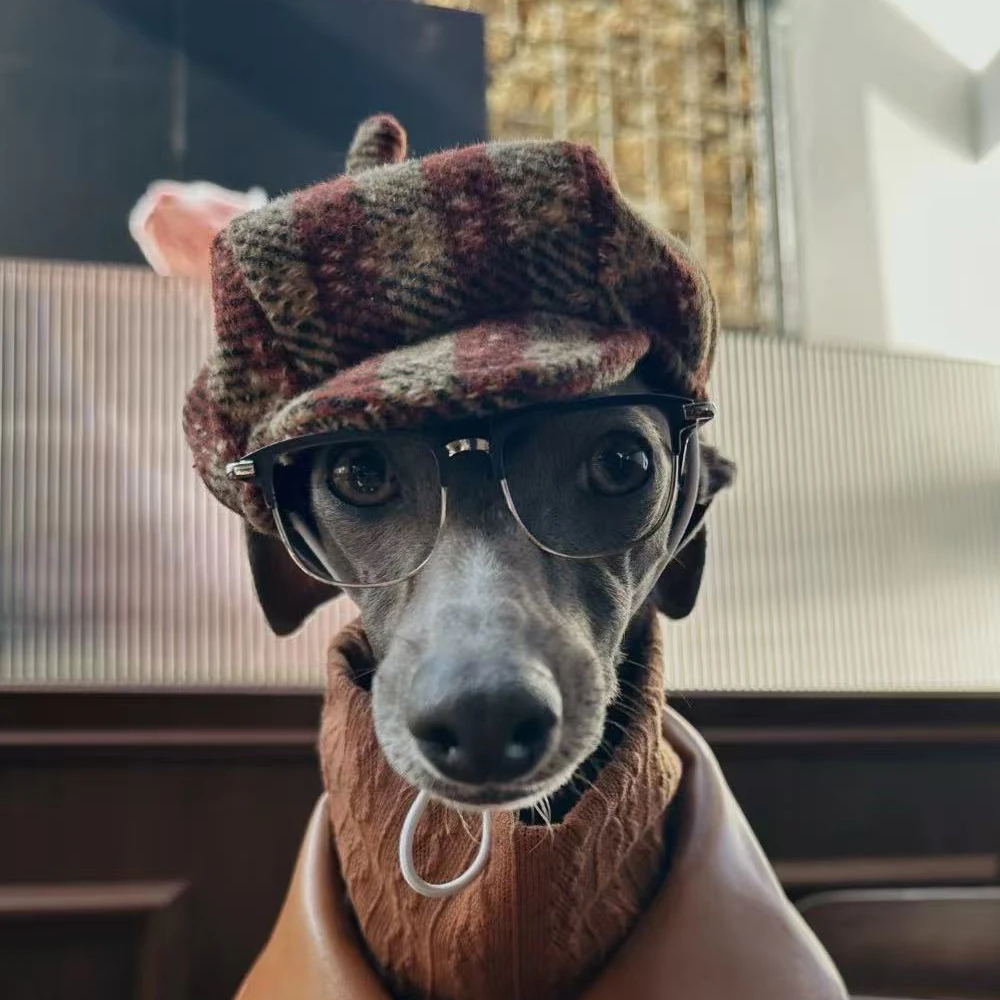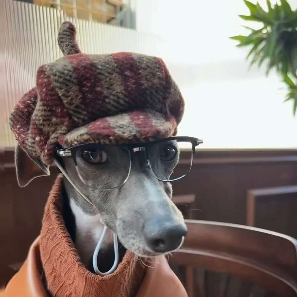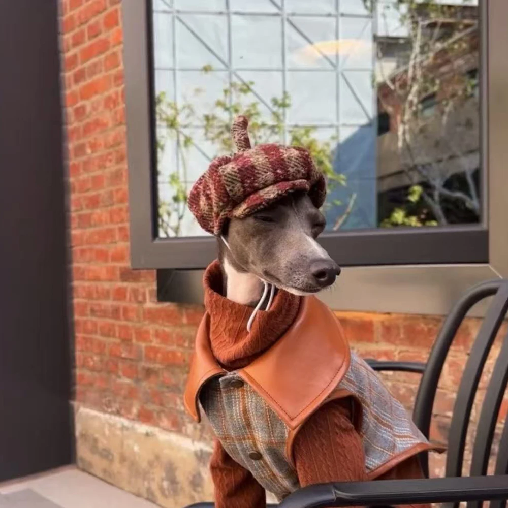 Gorro de perro a cuadros dulce para tocado italiano, boina de lana de lujo para Whippet, Meida pequeña, fiesta de perro, foto exterior