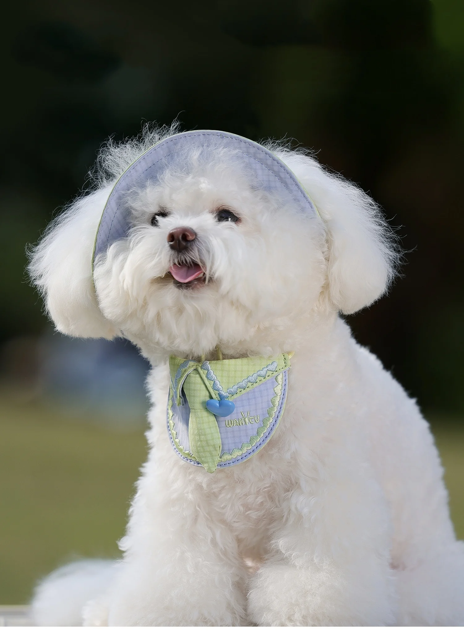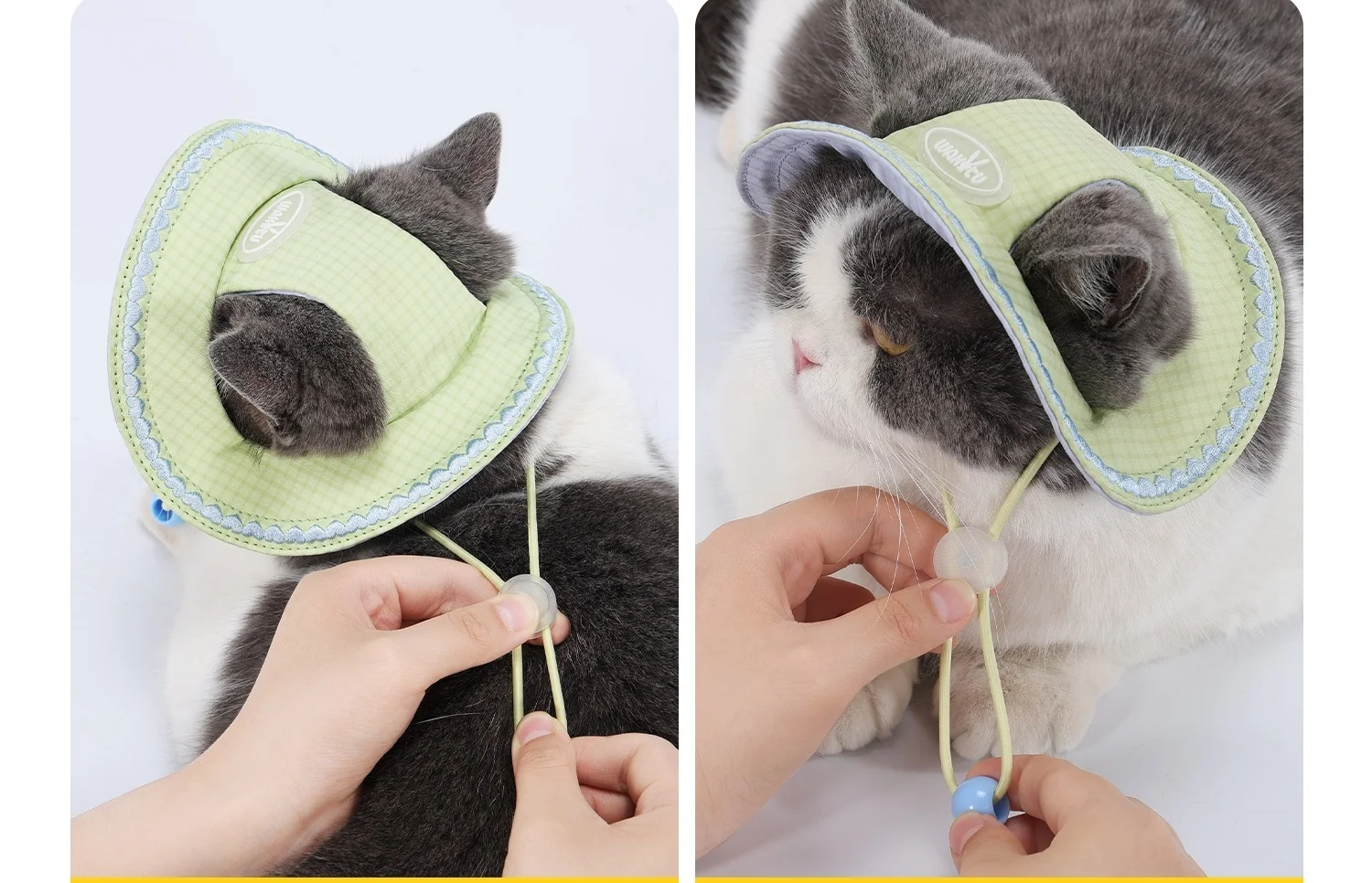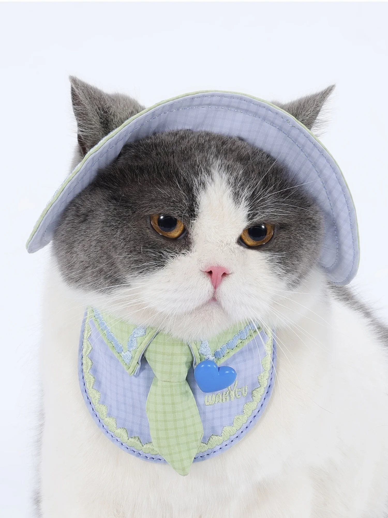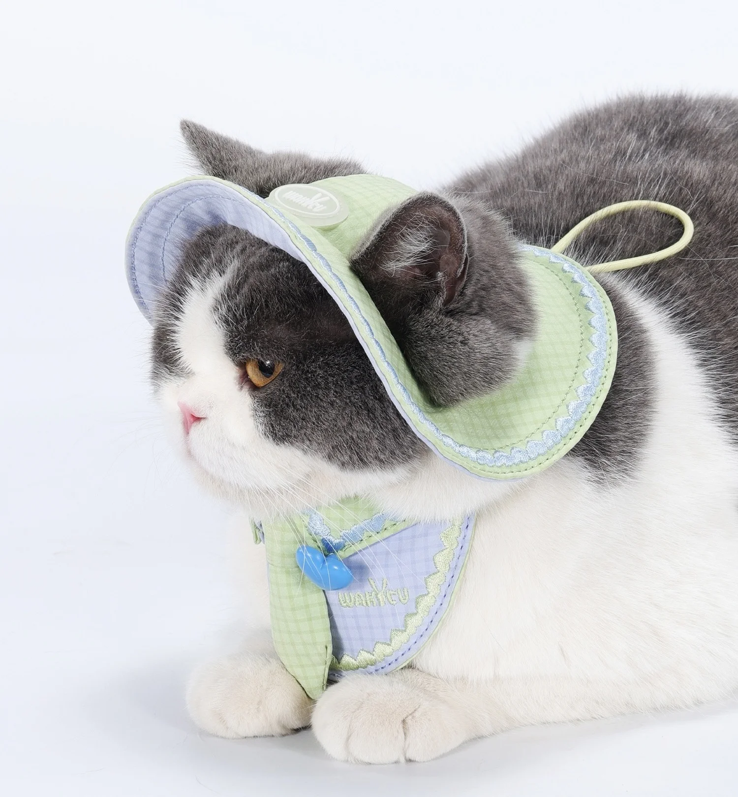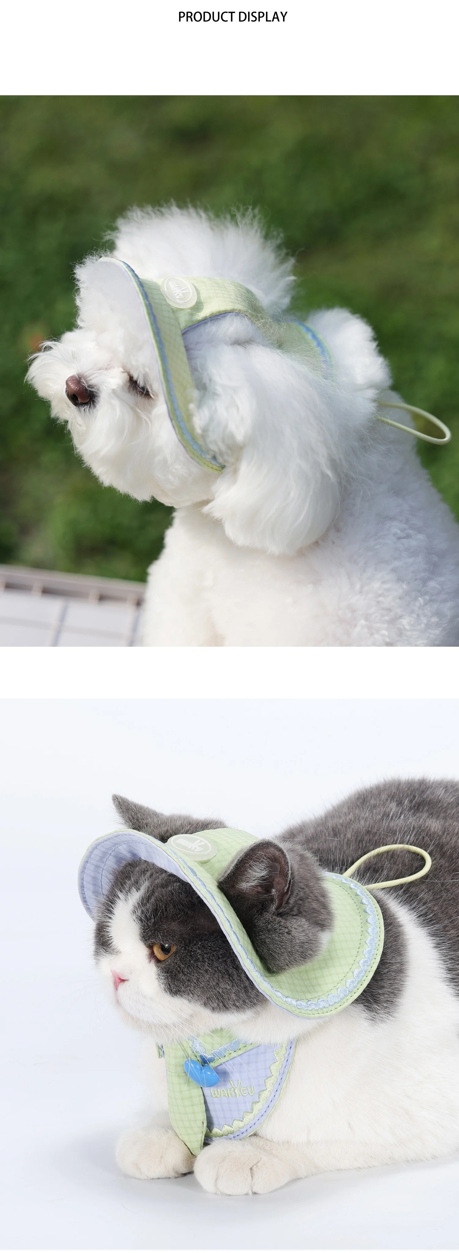 Sombrero de pescador para mascotas con babero para mascotas, conjunto de sombrero para gatos con babero para gatos, sombrero para el sol para mascotas, sombrero para exteriores para perros de verano con gorros para mascotas con orificio para la oreja