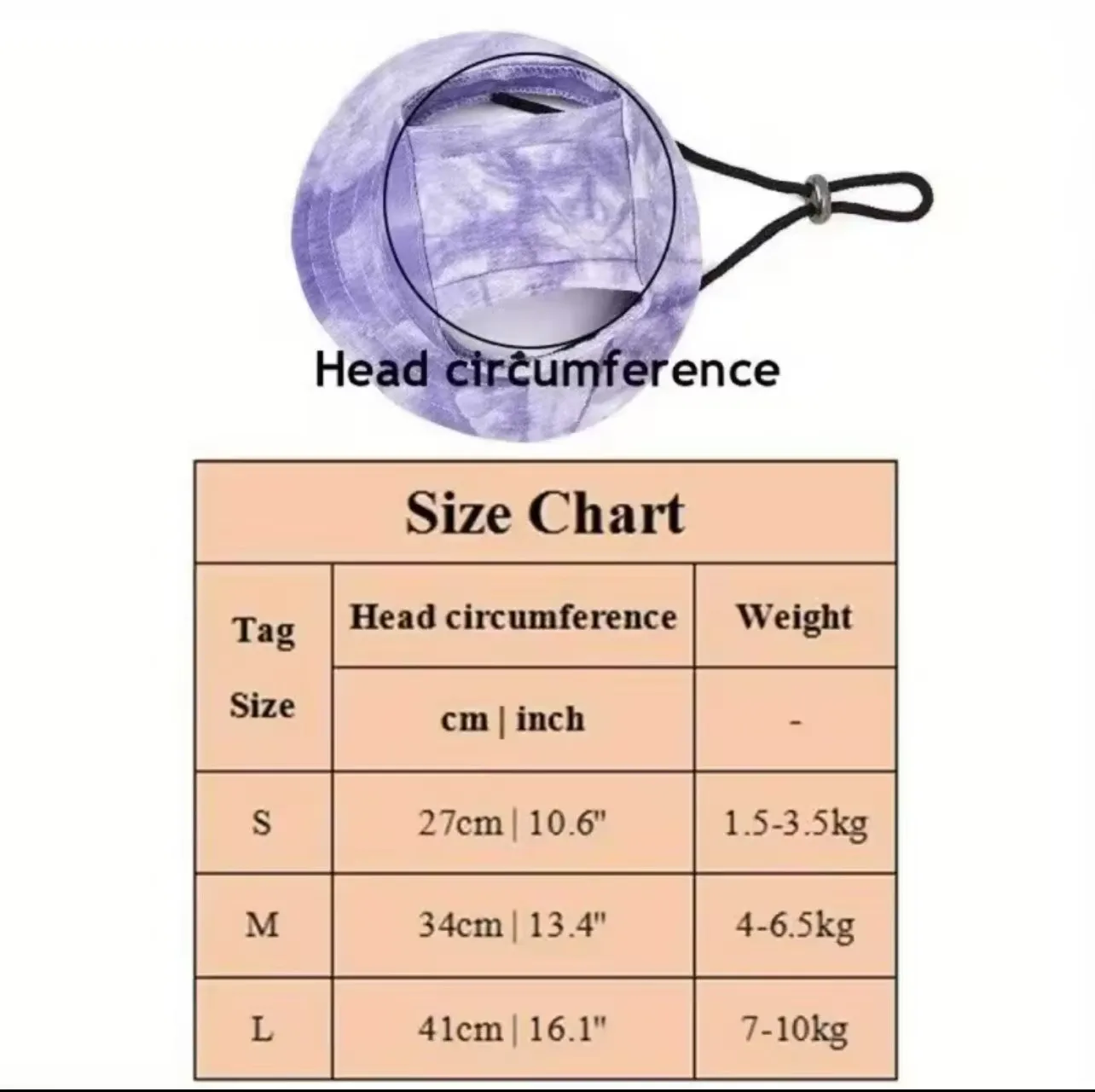 Talla S: circunferencia de la cabeza: 27 cm, peso recomendado: 1,5-3,5 kg