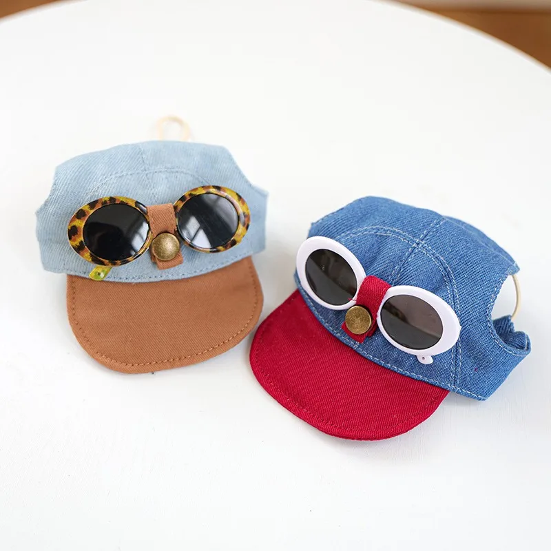 Sombrero de sol para mascotas de dos piezas a la moda y conjunto de gafas de sol geniales, gorra de béisbol para perros y funda para cabeza de gato