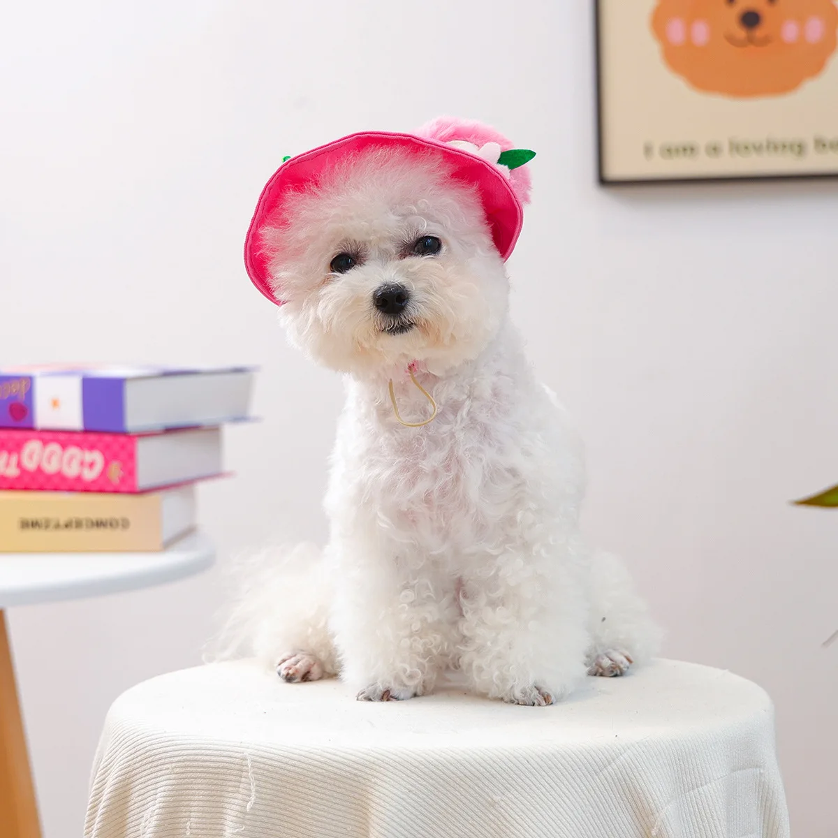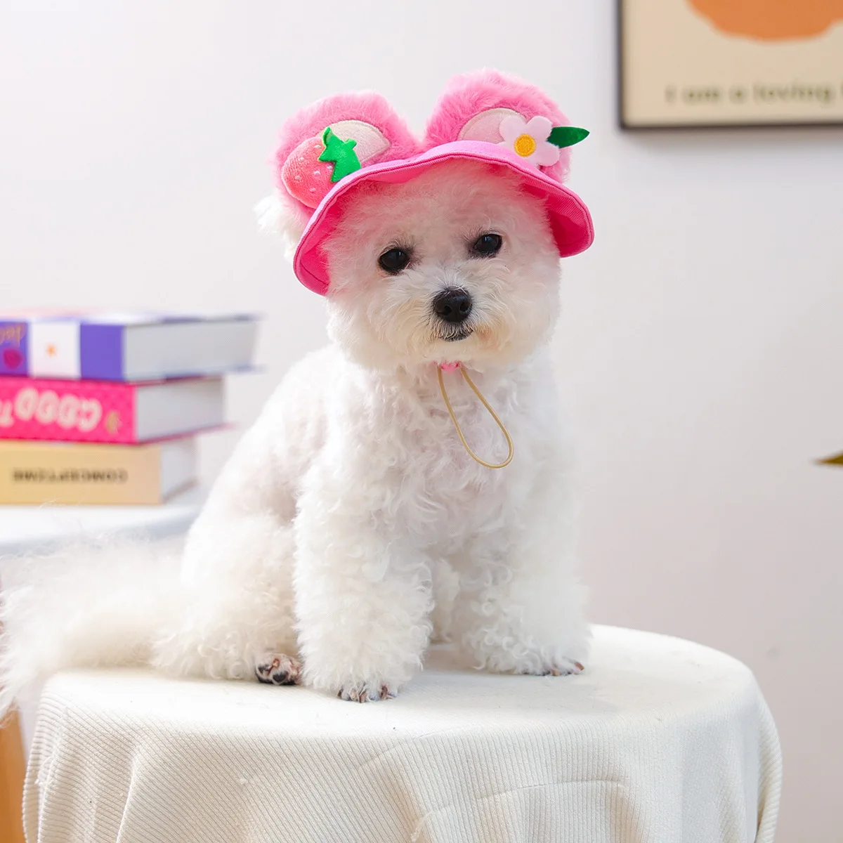 Sombrero para el sol de otoño e invierno para mascotas, perro pequeño para actividades al aire libre, orejas de felpa, accesorios bonitos, sombrero para el sol de fresa