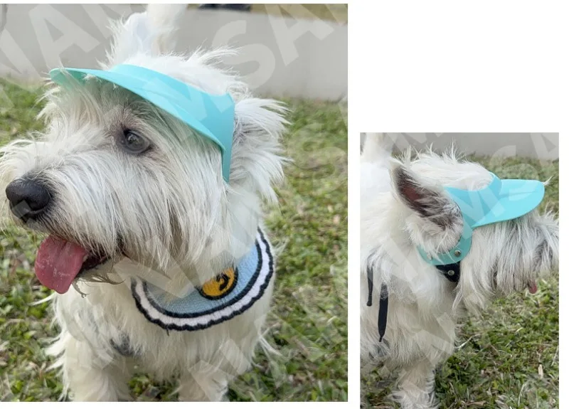 Sombrero de sol de plástico para mascotas, visera de protección solar con orejas expuestas para perros pequeños al aire libre, productos de decoración para senderismo, accesorios, gorras