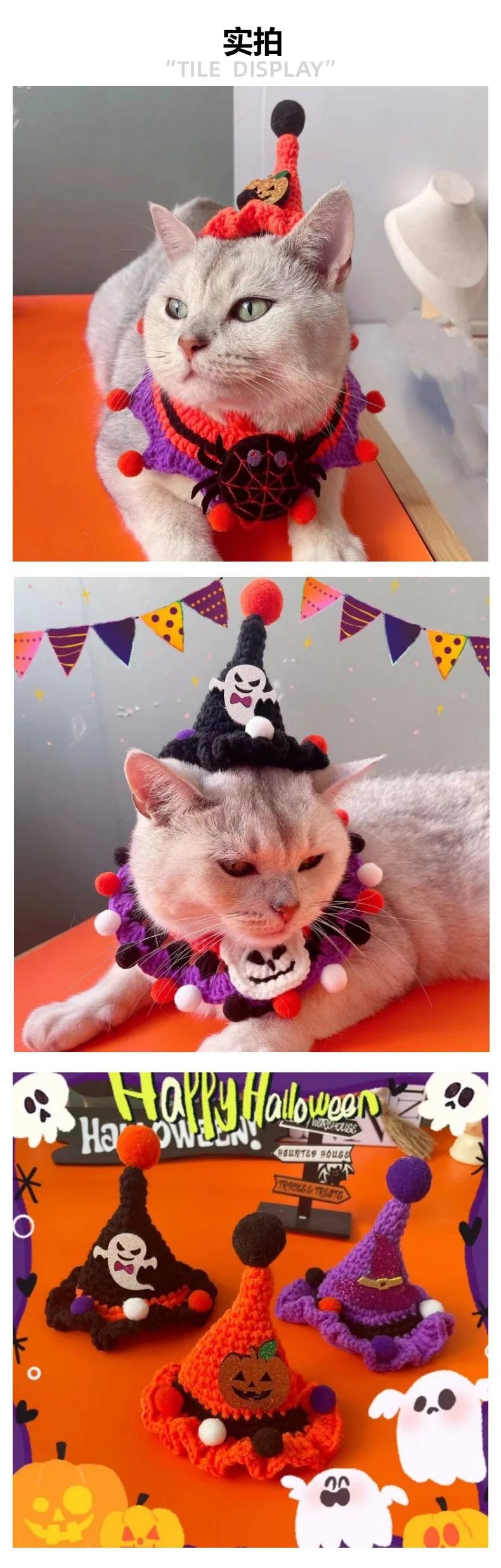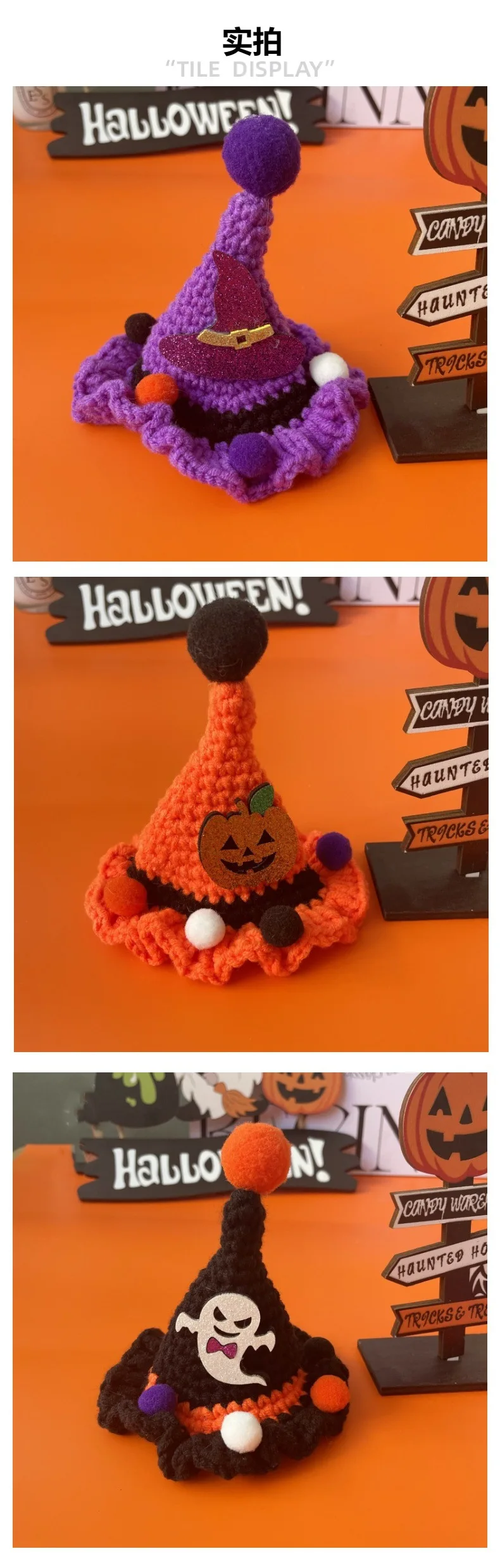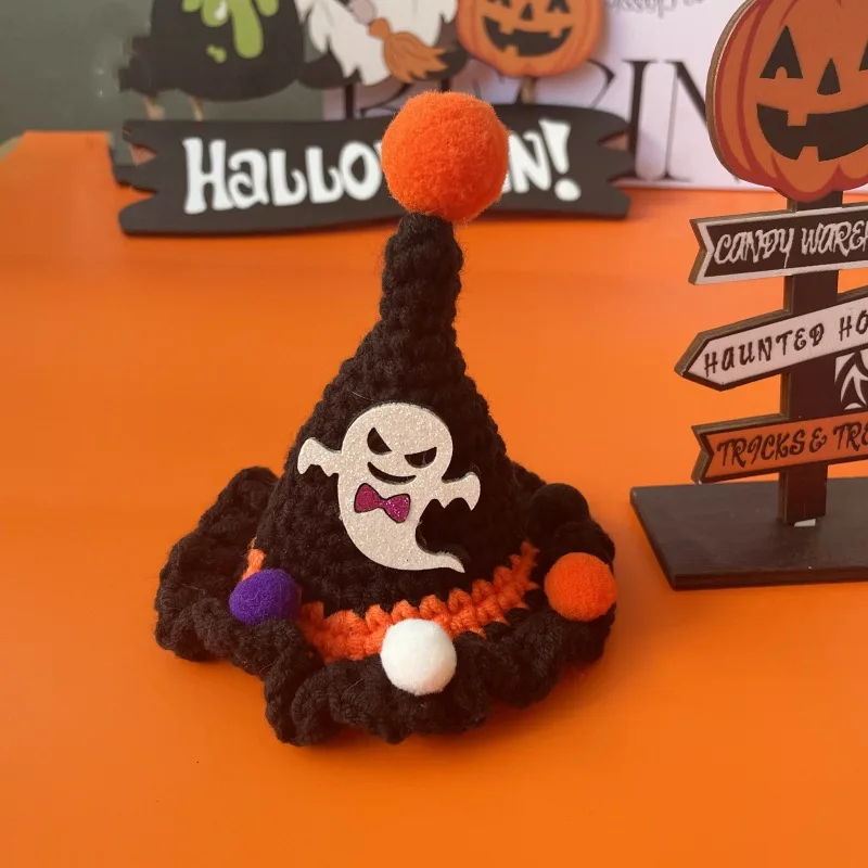 Sombrero de vestir para fiesta de Halloween para mascotas, bonito gorro tejido con gancho de calabaza, gorros para mascotas, accesorios para perros pequeños y cachorros
