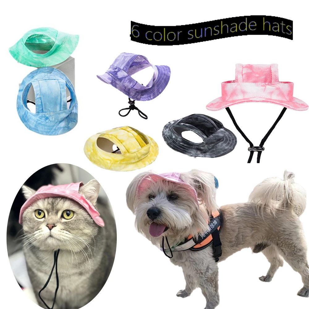 Sombreros de sombrilla para perros y gatos pequeños, sombrero ajustable para mascotas con orificio para la oreja, suministros para exteriores, Corgi, Yorkshire, cachorro y gatito