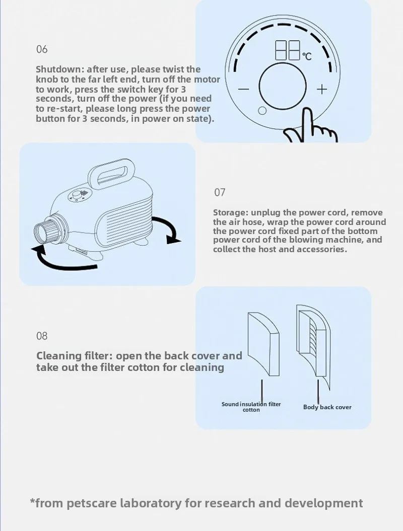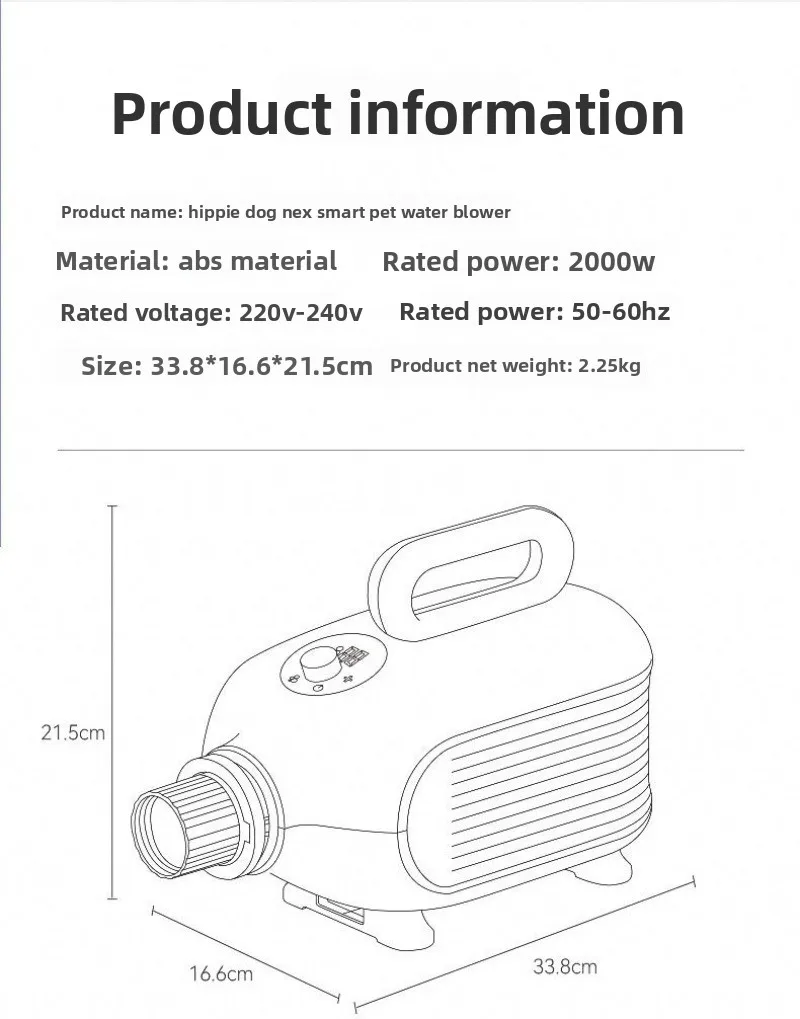 Soplador inteligente de alta potencia para mascotas, tienda de mascotas, máquina de soplado de agua, reducción de ruido, productos de aseo de iones negativos, accesorios