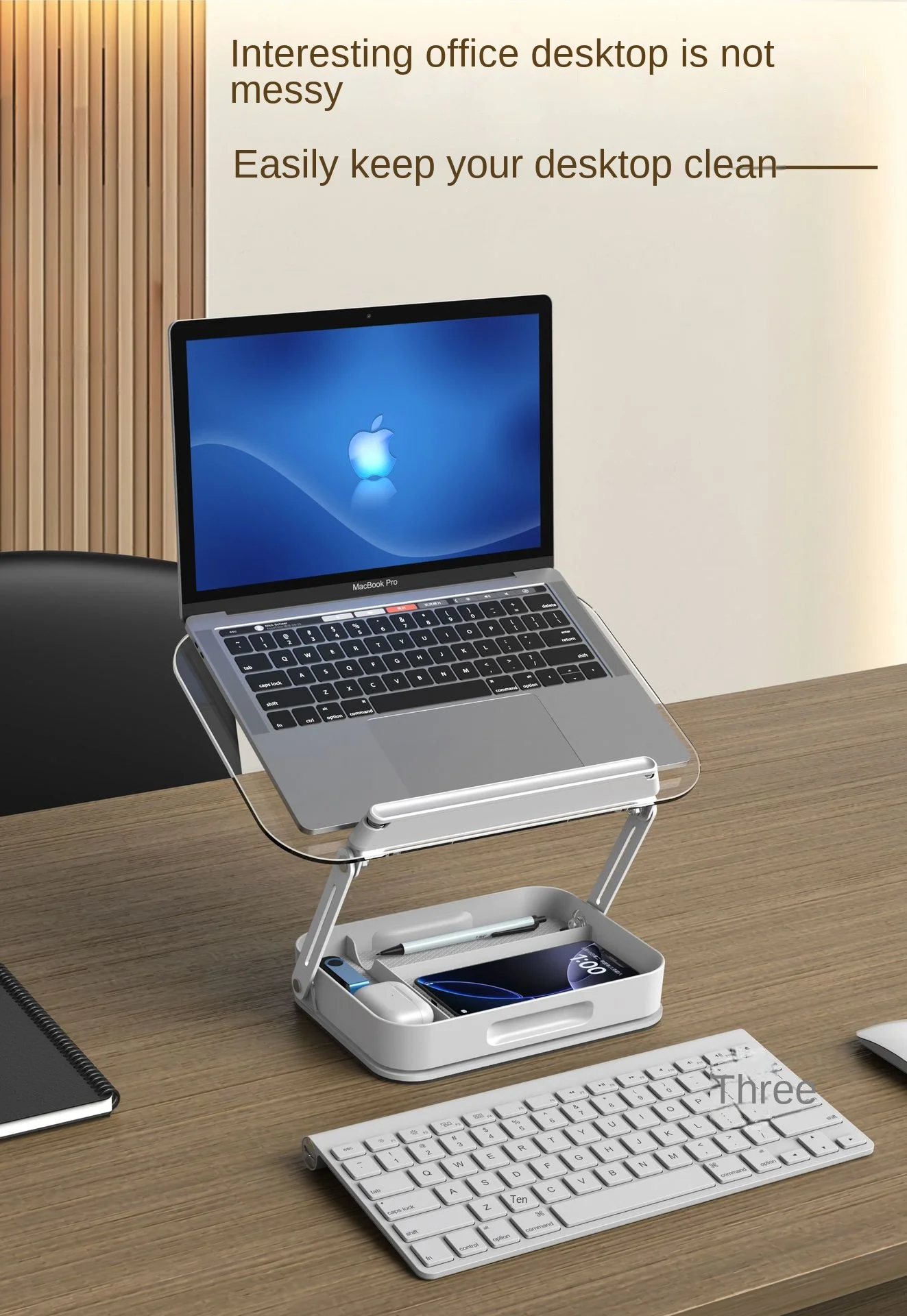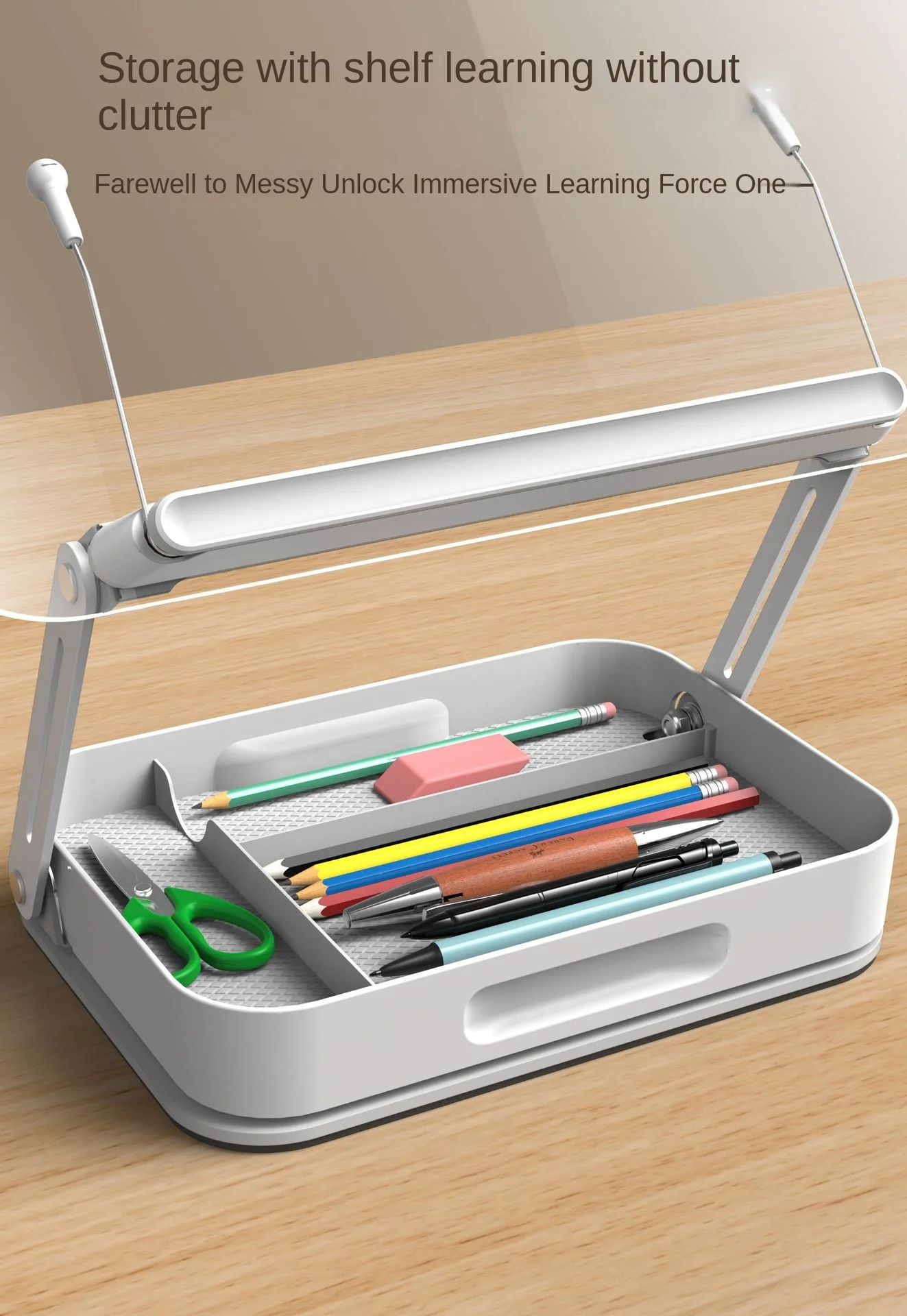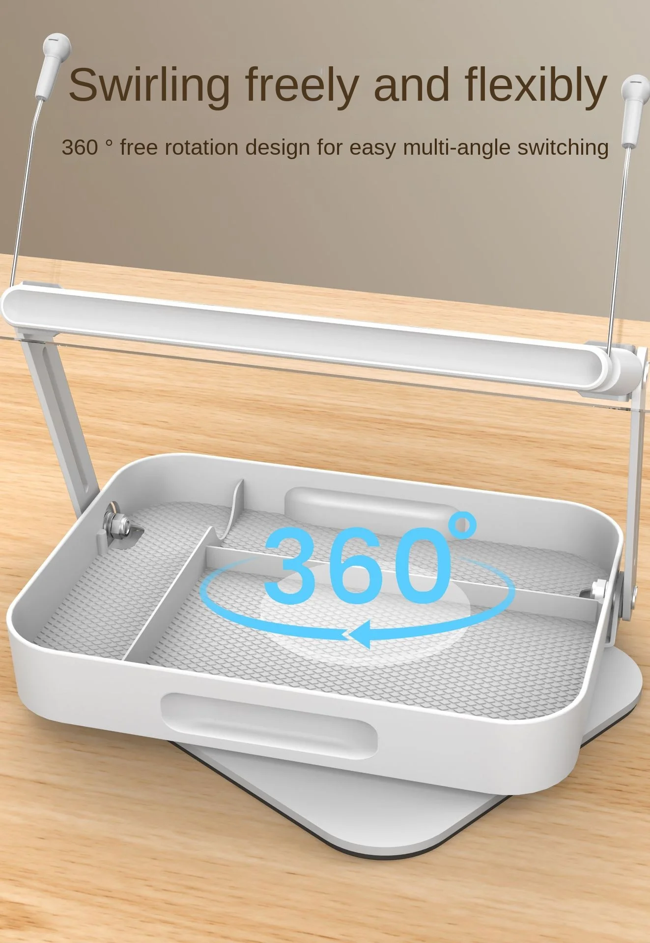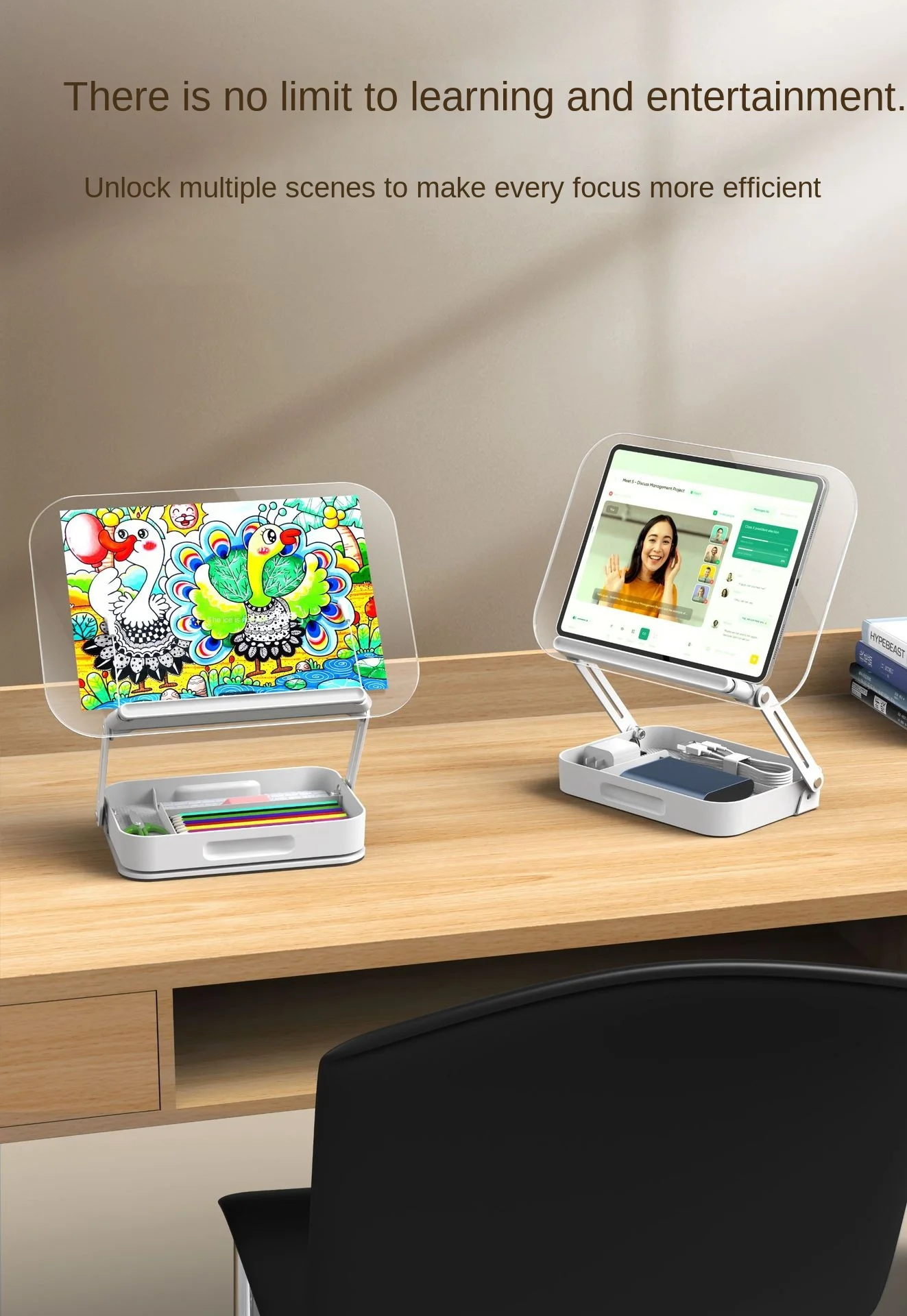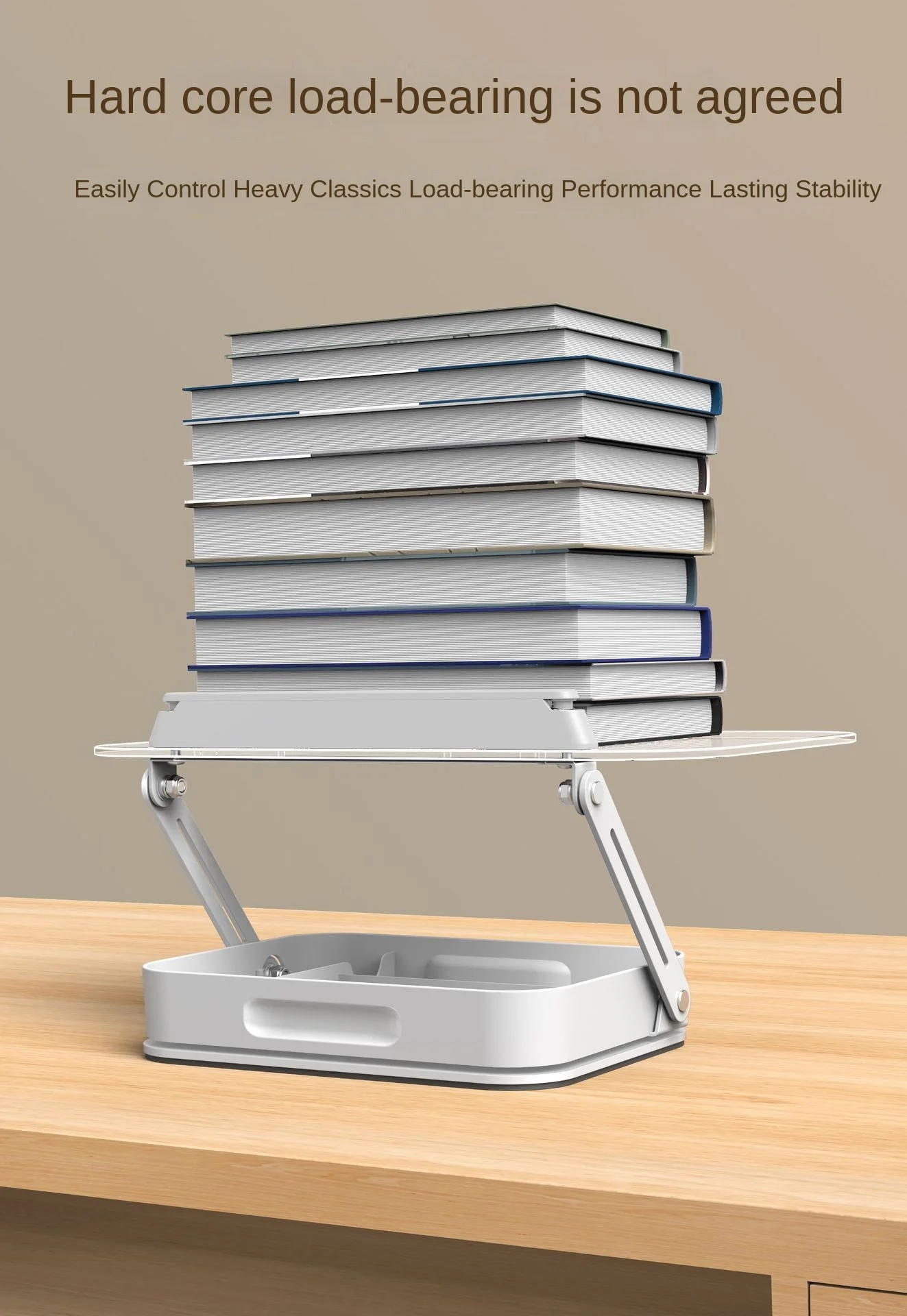 Soporte de acrílico para libros con almacenamiento, soporte ajustable para libros para leer con 360 ° Bases giratorias, soporte elevador de escritorio plegable