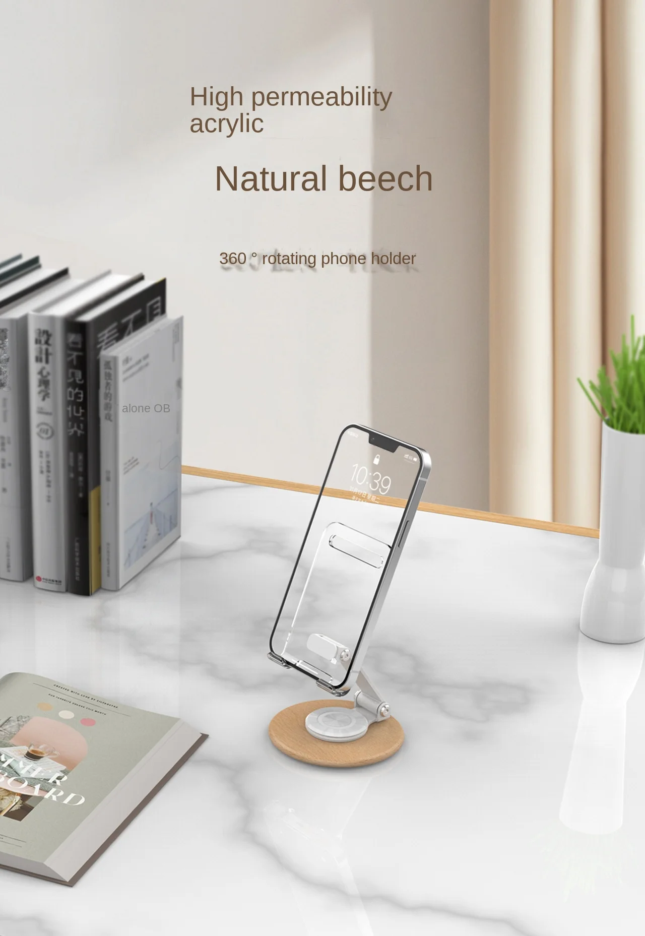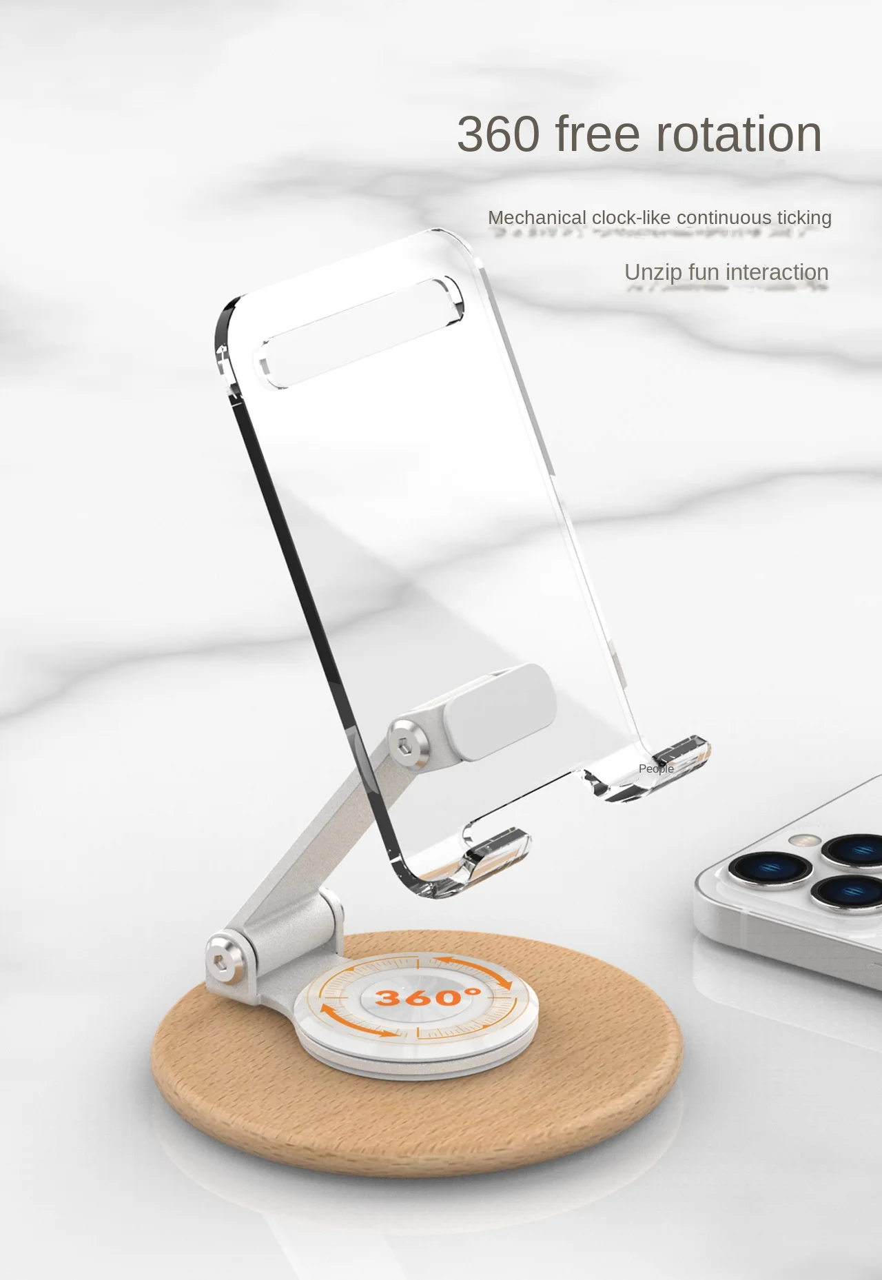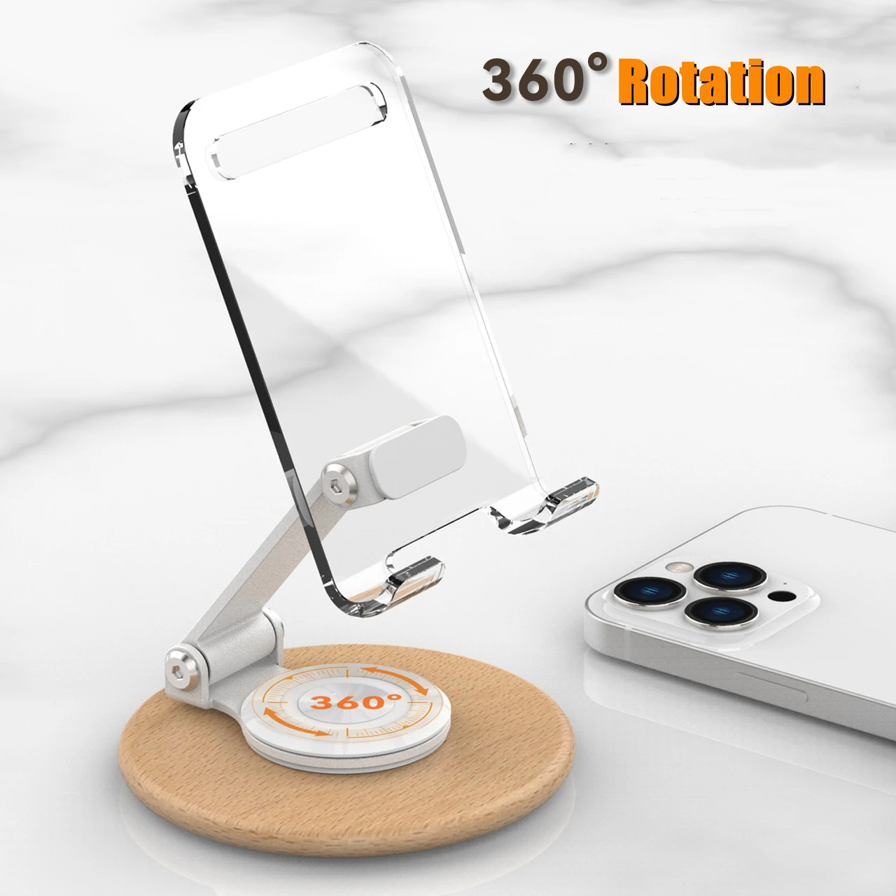 Soporte acrílico para tableta con soporte plegable giratorio de 360 grados para teléfono, soporte portátil ajustable antideslizante para teléfono inteligente de escritorio