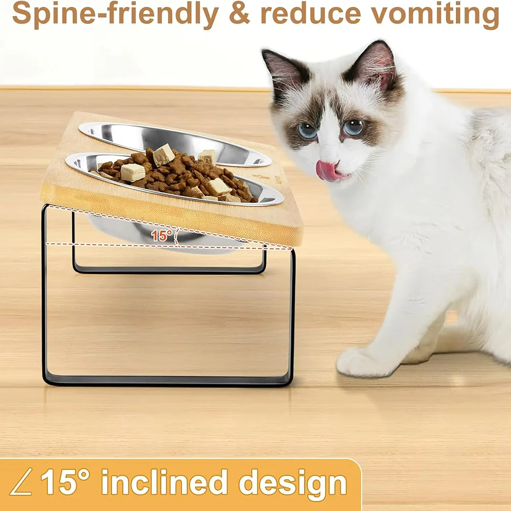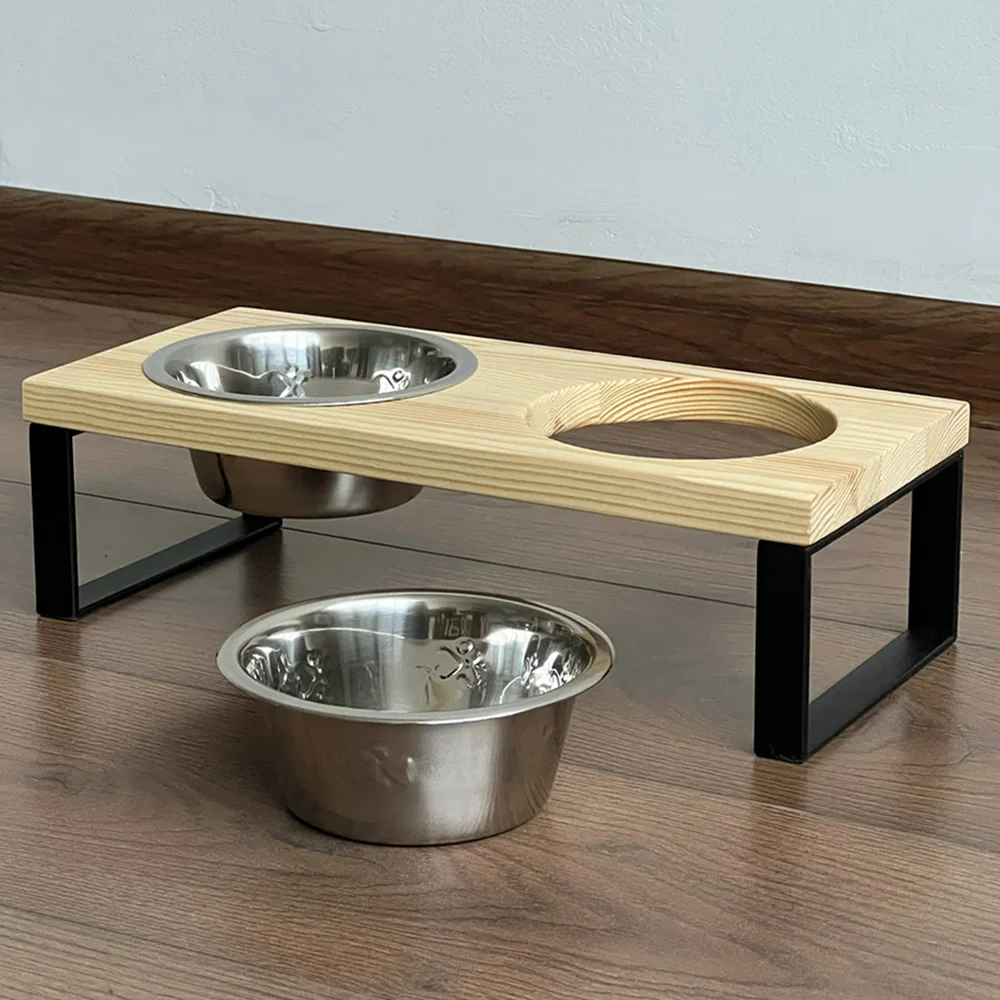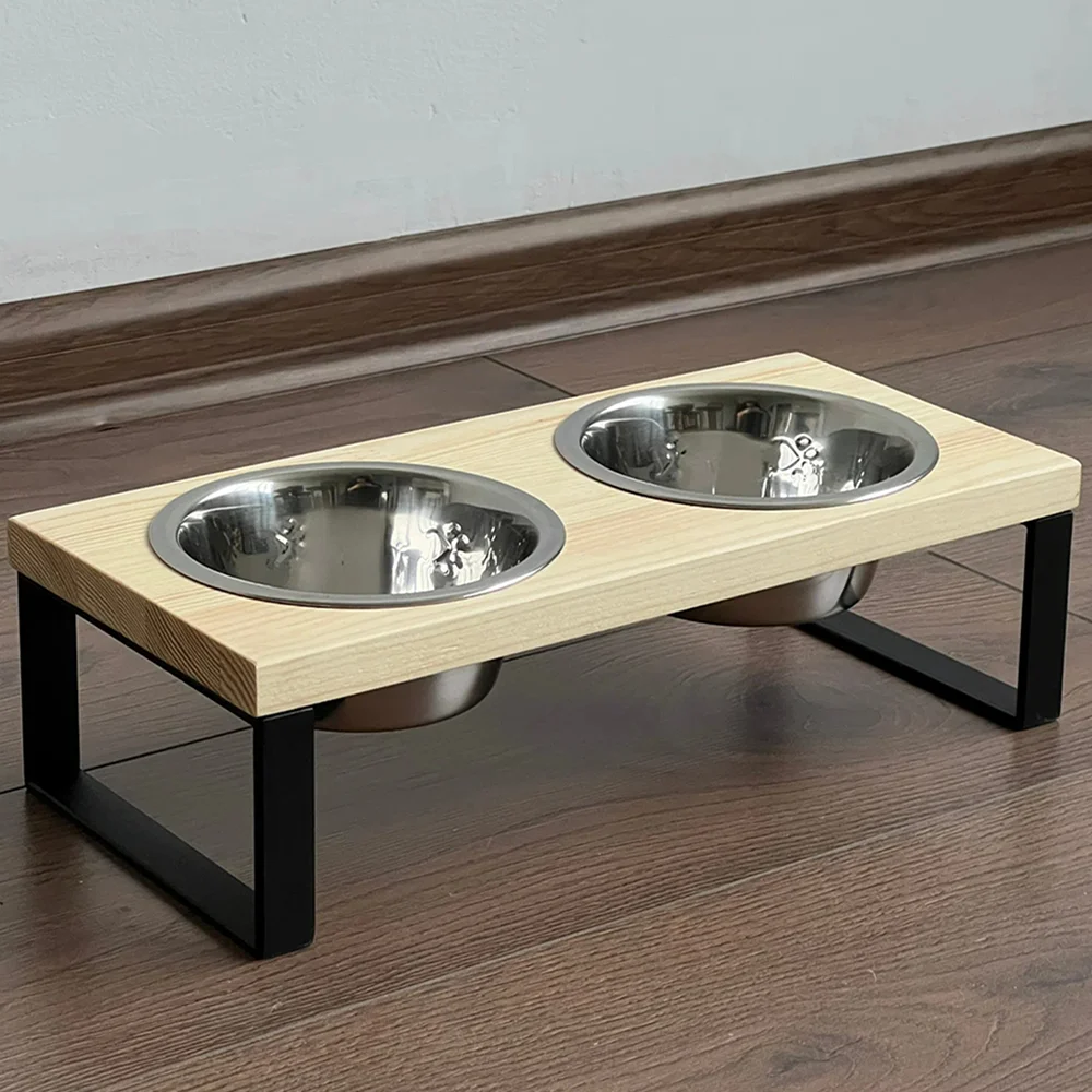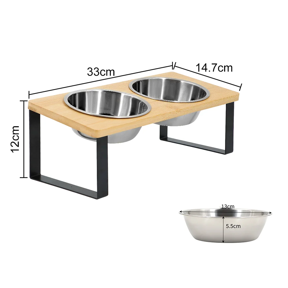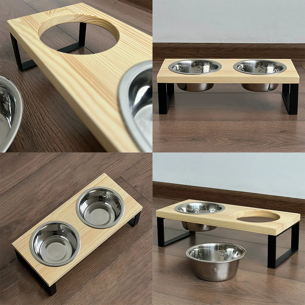Soporte de alimentación para mascotas con cuenco de acero inoxidable: alimentación cómoda de dos o tres tazones de madera para elegir, ideal para perros y gatos