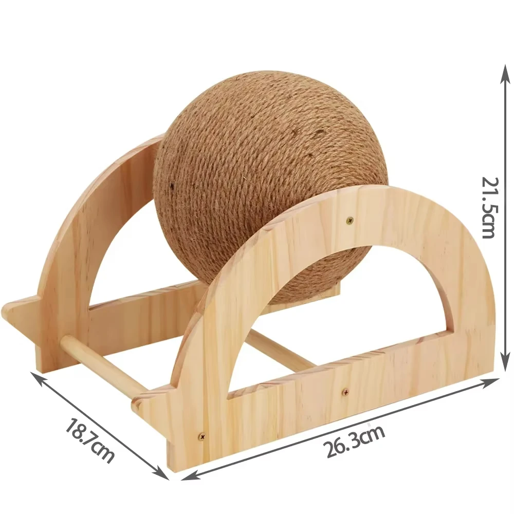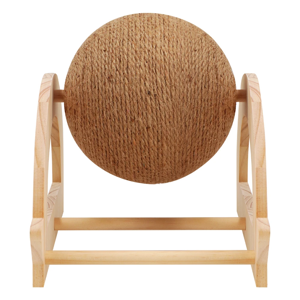 La esfera está bien envuelta con sisal de alta calidad.El sisal es un material de fibra natural y su superficie rugosa es muy adecuada para que los gatos muerdan sus patas.Durante el proceso de rascar la bola de sisal, los gatos pueden afilar eficazmente sus garras, mantener su salud y filo y también evitar dañar los muebles en casa debido a que no hay que rascarse sus garras.