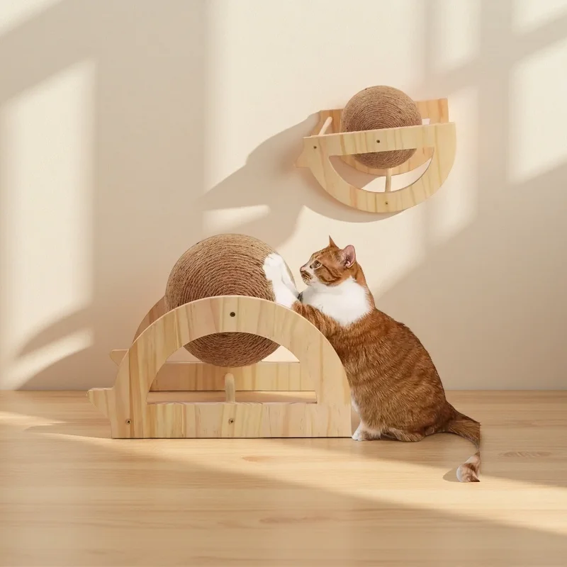 Esta es una pelota rascadora para gatos de madera natural única diseñada específicamente para gatos, que integra perfectamente funciones de entretenimiento y pulido de patas.El diseño general es simple pero divertido, lo que agrega una alegría infinita a la vida del gato.