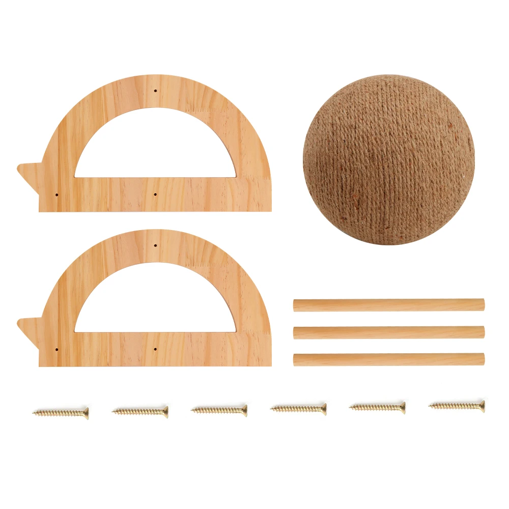 El marco está cuidadosamente elaborado con madera natural, con vetas claras y una textura resistente y duradera.Este material natural no sólo es ecológico y saludable, sin la adición de productos químicos, por lo que los gatos no entrarán en contacto con ingredientes nocivos durante el juego, sino que también emiten un aroma natural que puede hacer que los gatos se sientan más cerca.La madera ha sido finamente pulida para obtener una superficie lisa y sin rebabas, evitando que los gatos se rayen mientras juegan.