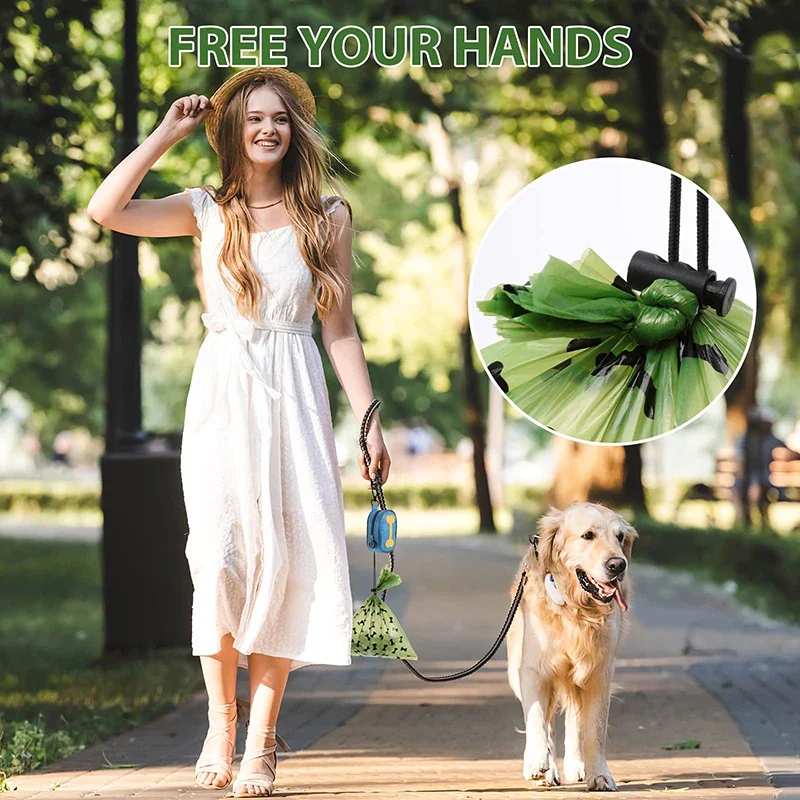 GRAN CAPACIDAD Y ALTA CALIDAD:Nuestro dispensador de bolsas para excrementos puede contener 1-2 rollos de bolsas para excrementos de perros.(NO INCLUIDO)y otros elementos esenciales como llaves y golosinas.También puede atar las bolsas desperdiciadas, liberando sus manos.Confeccionado en tejido Oxford resistente al desgaste e impermeable, 100% garantía de calidad.