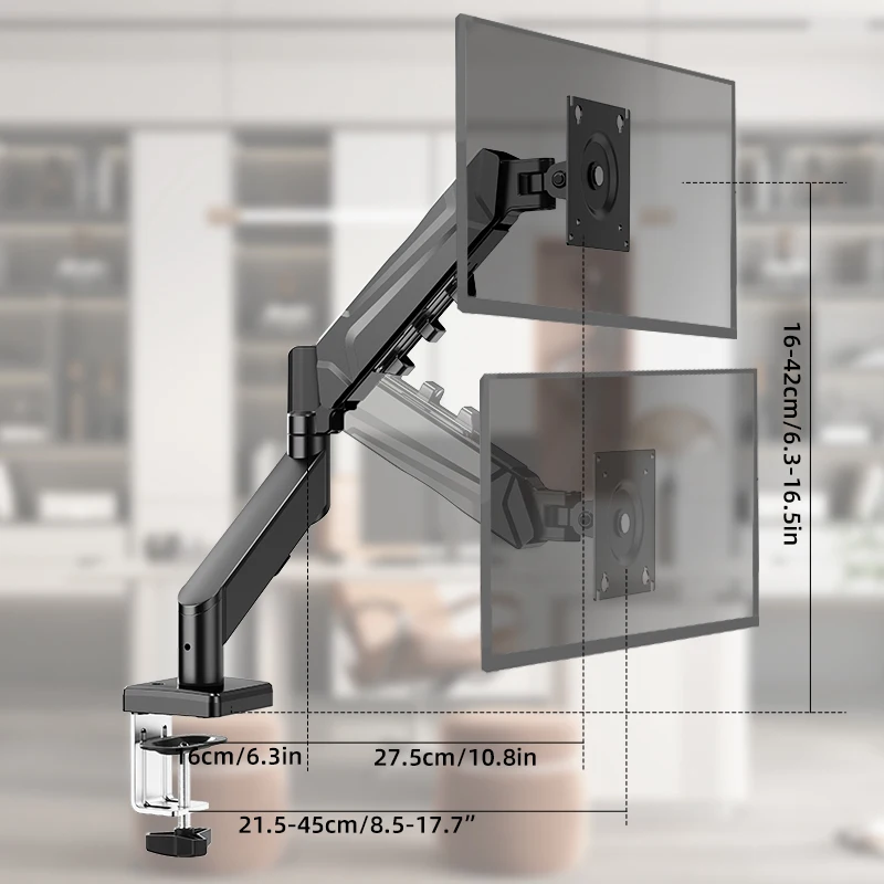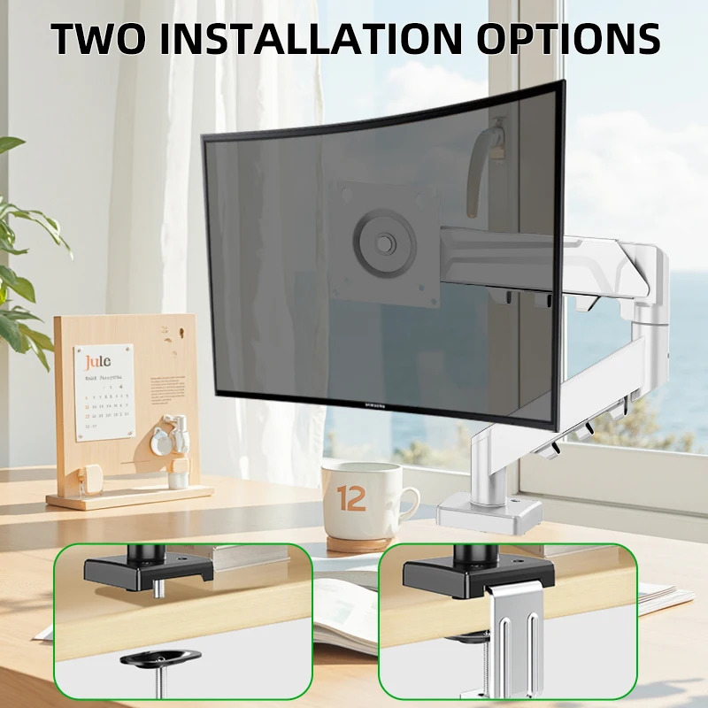 Soporte de monitor de resorte de gas ajustable, brazo de pantalla de computadora de hierro blanco y negro, rotación multiángulo de fácil instalación, compatible con monitores de 13-32 pulgadas