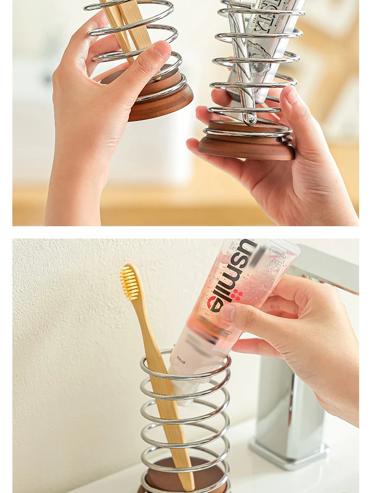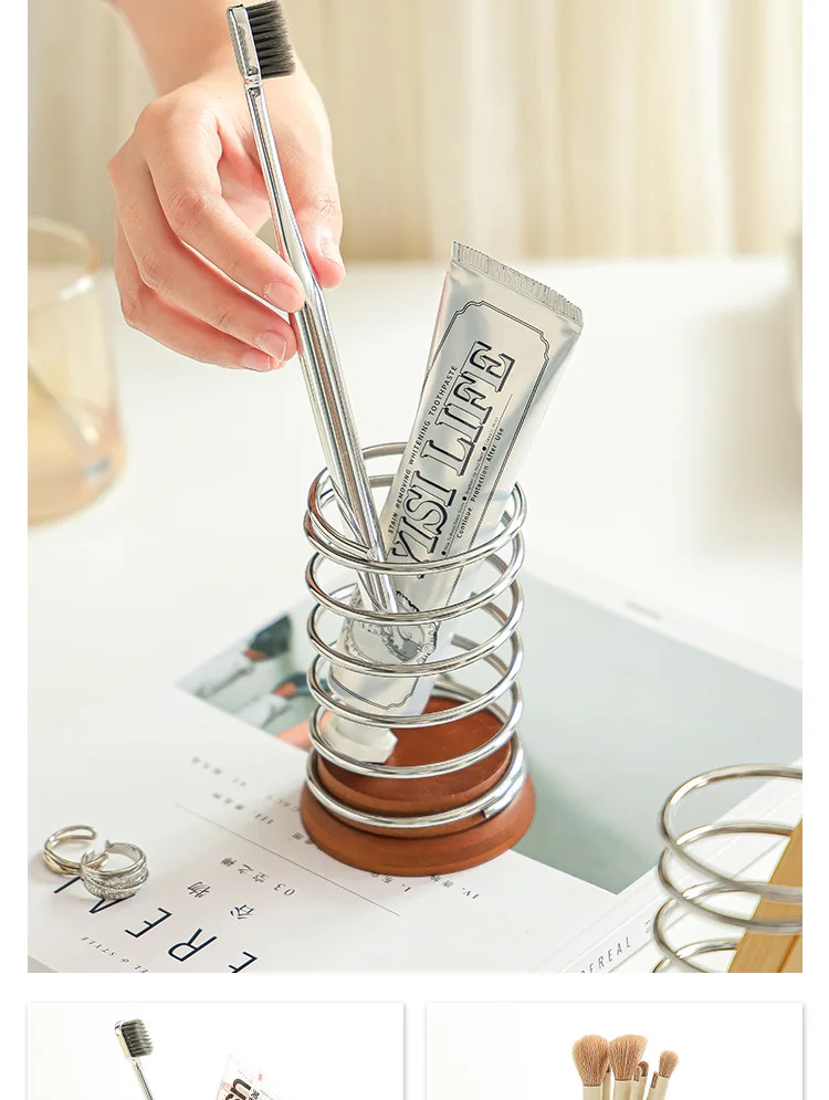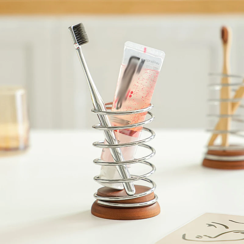 Soporte de cepillo de dientes de acero inoxidable, accesorios de baño de Metal, herramienta para pasta de dientes, estante de almacenamiento de brochas de maquillaje, decoración del hogar