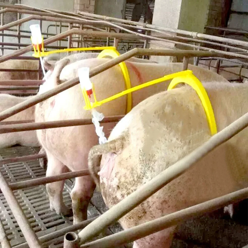 Nombre: Clip de inseminación para cerdas Función: Para evitar el reflujo del semen Material: polietileno nuevo Tamaño: Ver dibujo de dimensiones Adecuado para: cerdas Uso: Equipo de cría de cerdas Características: El material original es ligero y flexible, fuerte y resistente al desgaste y al envejecimiento. El diseño de posicionamiento de tres orificios puede ajustar el tamaño apropiado de acuerdo con el tamaño del cuerpo de la cerda, lo cual es flexible y conveniente Evita el reflujo de semen y mejora la eficiencia de la infusión de semen Biberón de inseminación y conductos deferentes eficaces y estables Notas: 1. Debido monitores y a los diferentes efectos de luz, el color real del artículo puede ser ligeramente diferente del color que se muestra en las imágenes. ¡Gracias! 2. Permita una desviación de medición de 1-3cm debido a la medición manual.