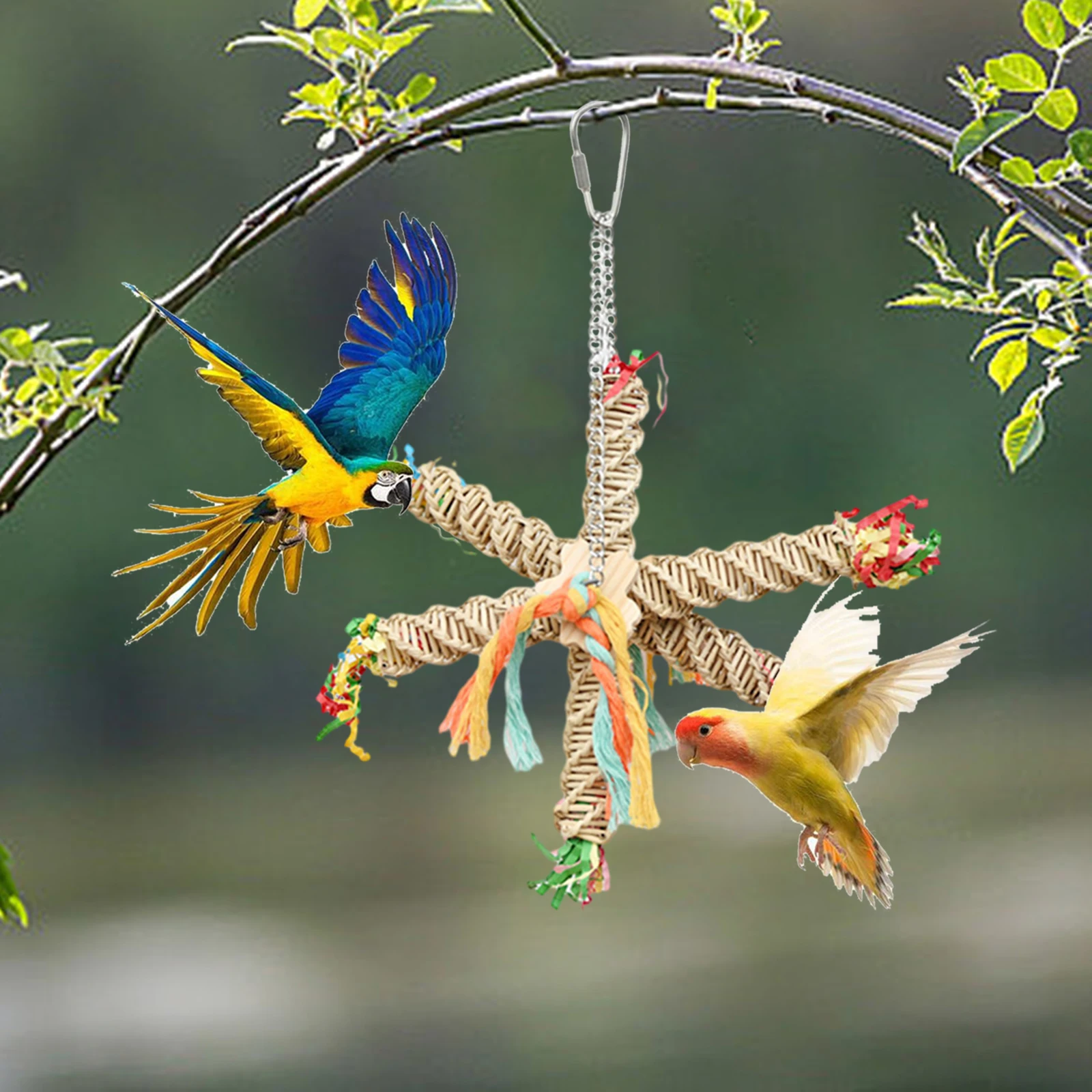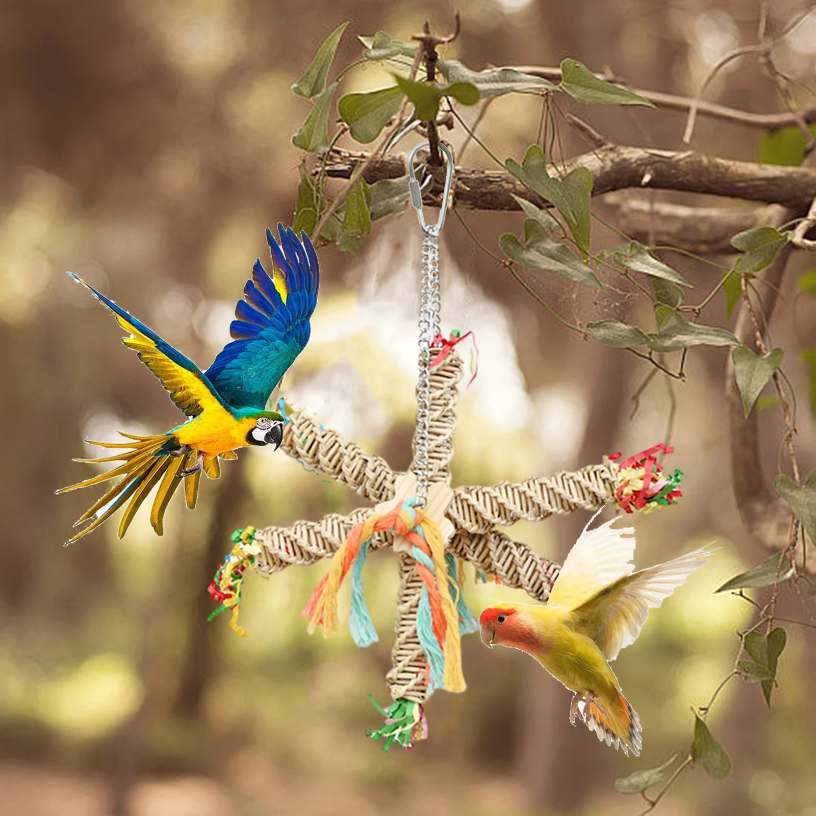 【Juguetes masticab】: Los colores brillantes del juguete trenzado atraen la atención de los loros, satisfacen sus hábitos de masticación y les permiten practicar morder mientras juegan.