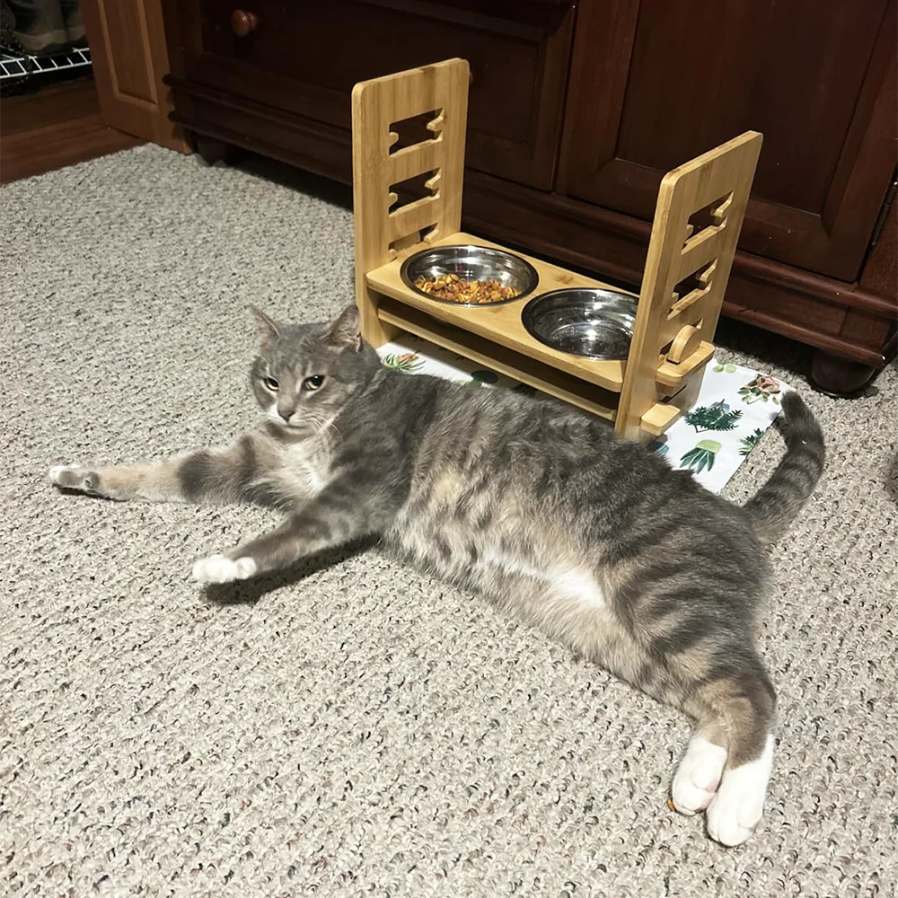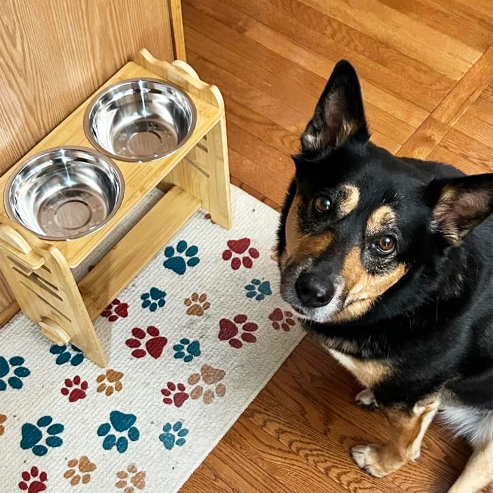 La artesanía natural y sin olores hace que el cuenco elevado para perros sea delicado y suave. Los dos tazones de acero inoxidable son resistentes al óxido y aptos para lavavajillas, lo que los hace fáciles de limpiar y mantener.