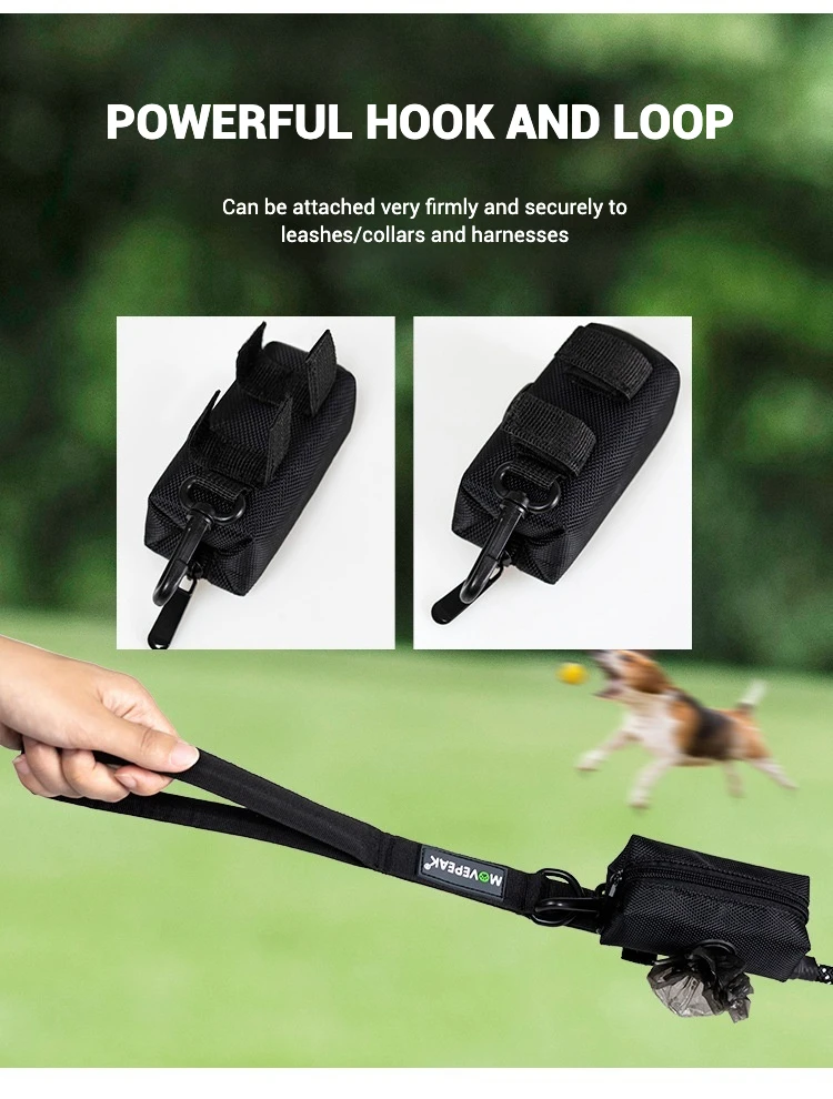 🌟 1. Cremallera y bolsillo de metal de primera calidad: Nuestro soporte para bolsa para excrementos cuenta con una cremallera y un bolsillo de metal de alta calidad para un uso sin esfuerzo.Es lo suficientemente espacioso como para acomodar 2 rollos de bolsas para excrementos, llaves, monedas e incluso pequeñas golosinas de entrenamiento para su perro.