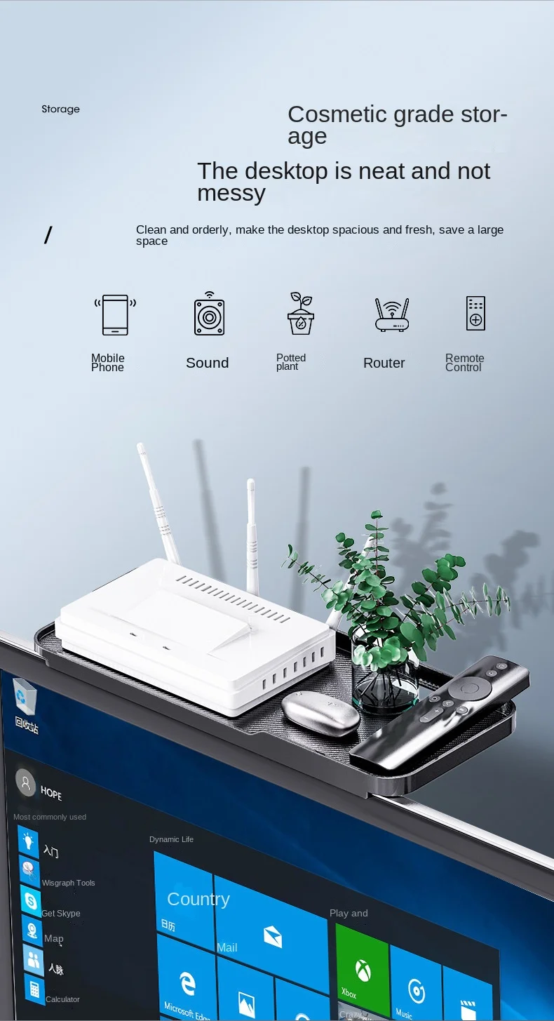 1.No es necesario perforar agujeros, es fácil de usar.Ahorre espacio y haga que su escritorio esté más limpio.Estantería que puede contener teléfonos móviles, televisores, ordenadores y objetos pequeños.