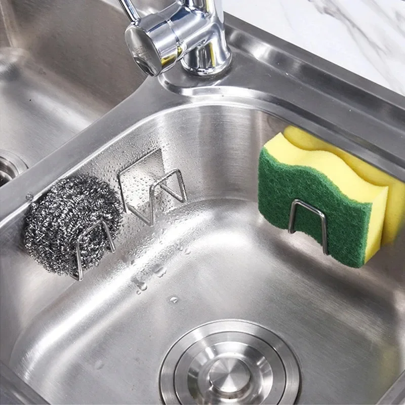 Soporte de esponjas para fregadero de cocina de acero inoxidable, escurridor autoadhesivo, estante de secado, ganchos de pared para cocina, organizador de almacenamiento para el baño, 1 ud.