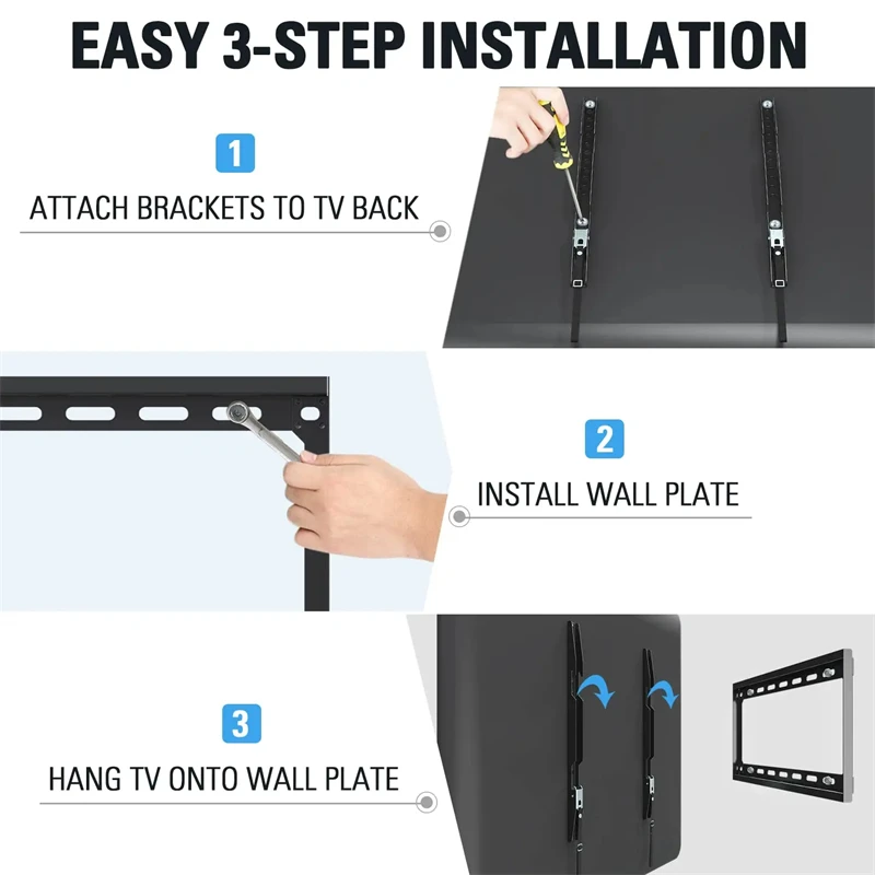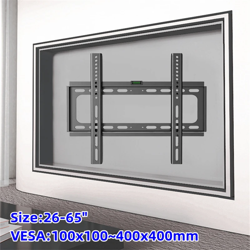 Soporte fijo de montaje en pared para TV para pantallas de 26-63 pulgadas, Metal, montaje VESA 400x400mm, soporte de carga 50Kg/110lb montaje seguro para el hogar