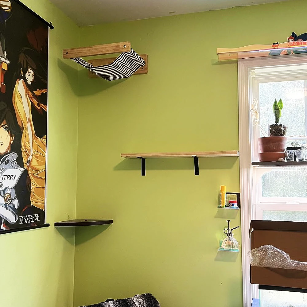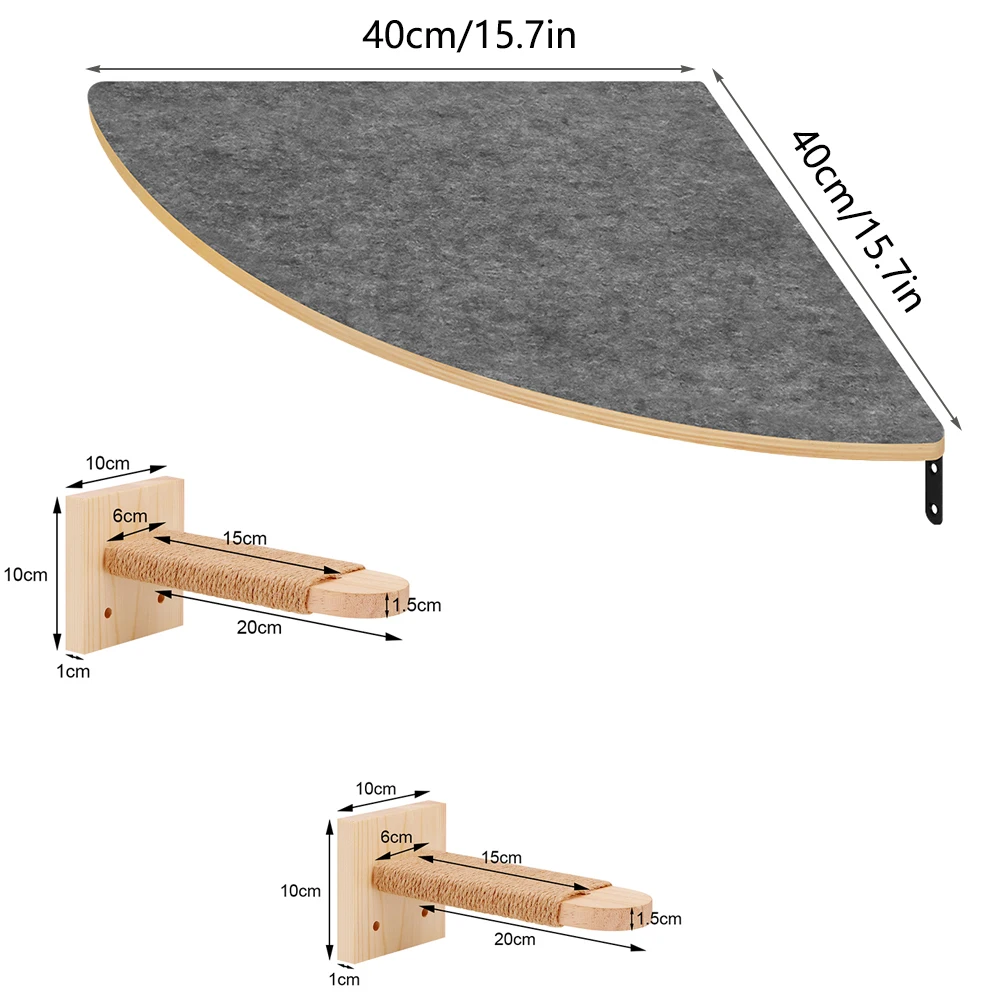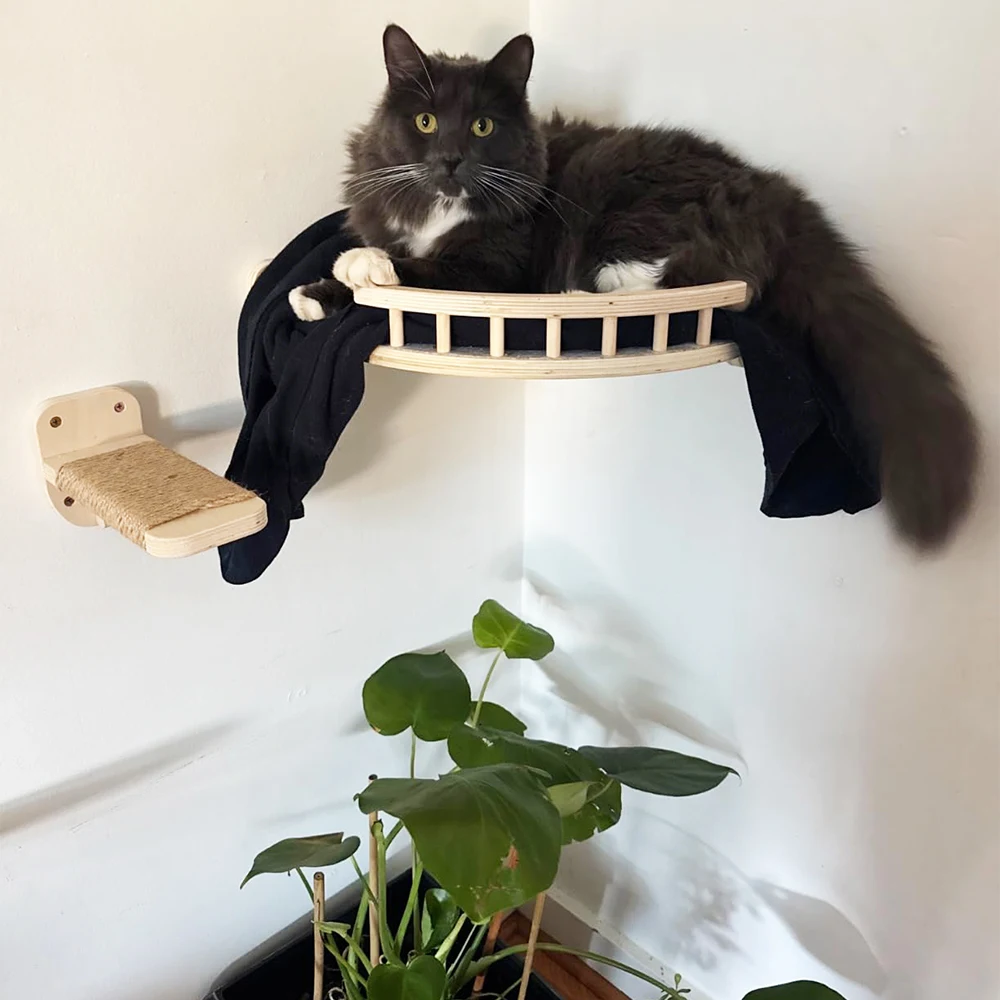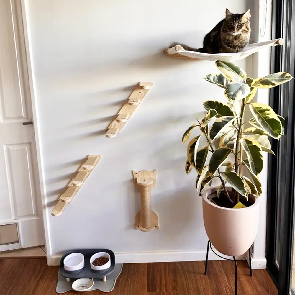 Soporte para gatos, plataforma para saltar, tablero para rascar gatos, hamaca para gatos montada en la pared, escalera de cuerda, muebles de pared de madera, accesorios para gatos