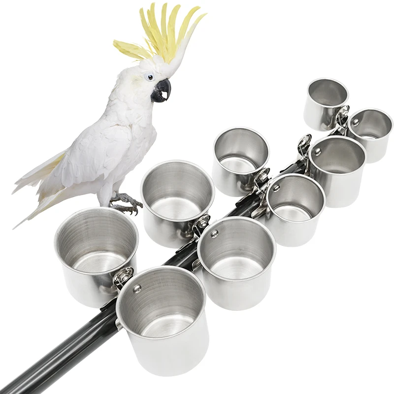 Soporte de jaula de acero inoxidable, tazas dobles con Clip, pájaro, loro, comida doble, dispensador de tazas de alimentación de agua, suministros de jaula duraderos para mascotas
