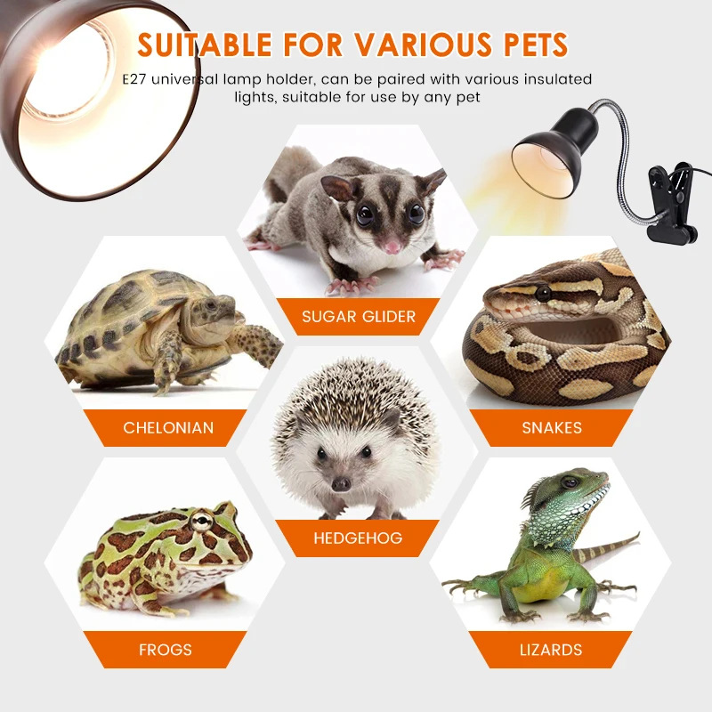 Puede instalar todas las lámparas E27, como calentador cerámico, UVA, UVB, calentador infrarrojo, etc., fácil de usar.