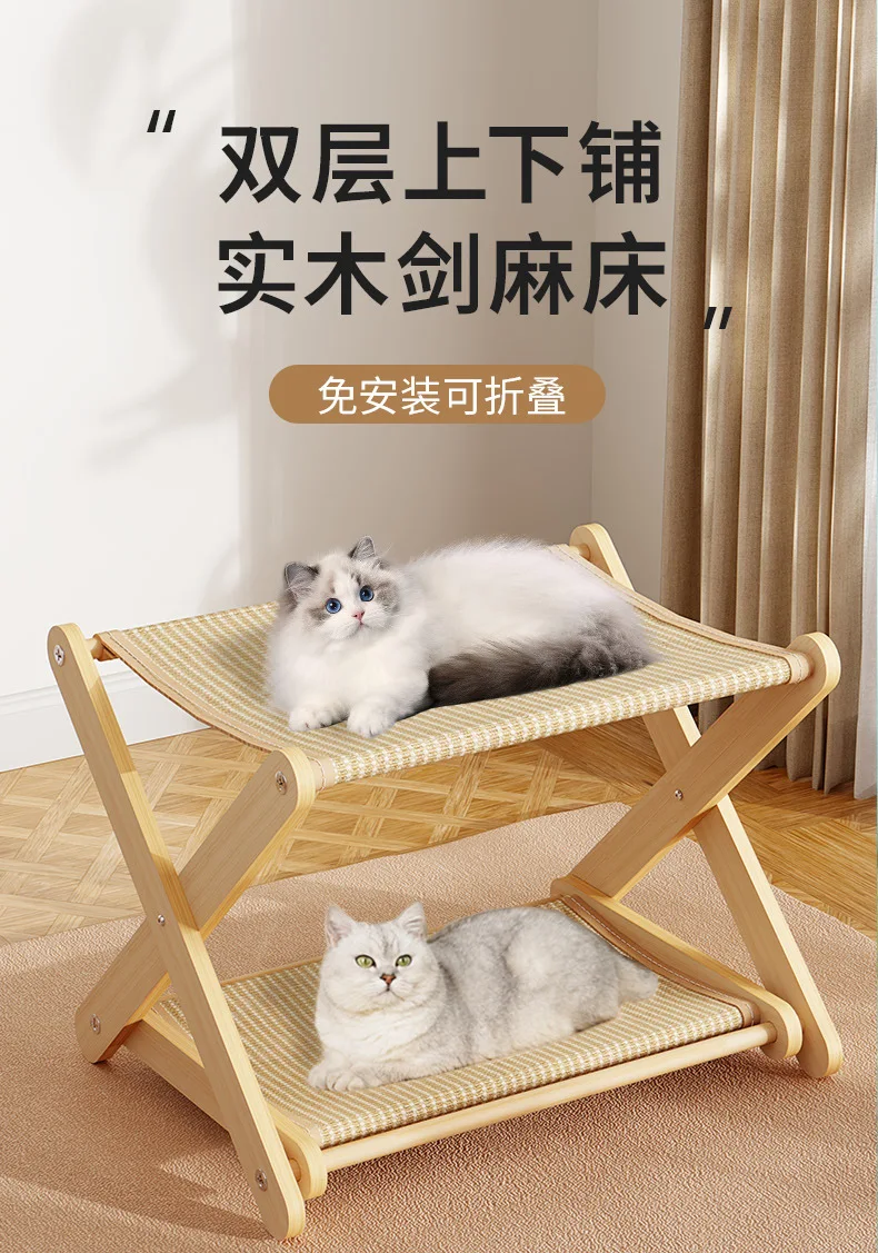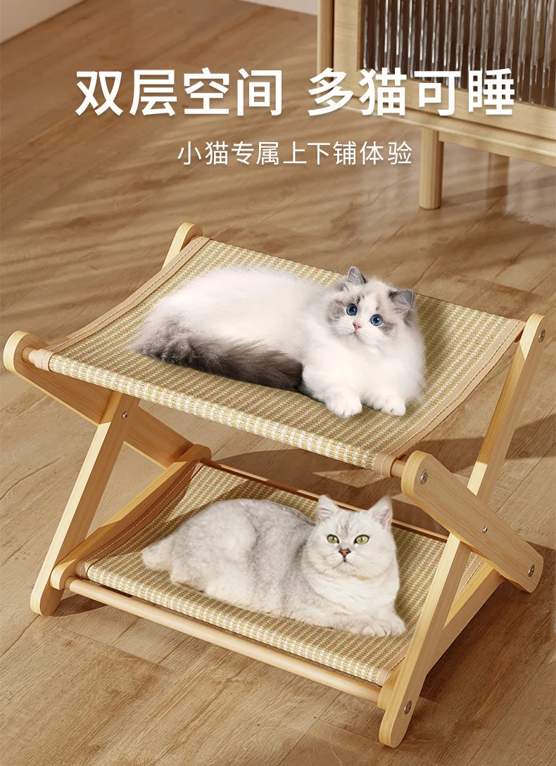 Soporte de madera auténtica para rascar gatos, hamaca Universal para gatos de cuatro estaciones, nido para mascotas de madera maciza, suministros para cama para mascotas