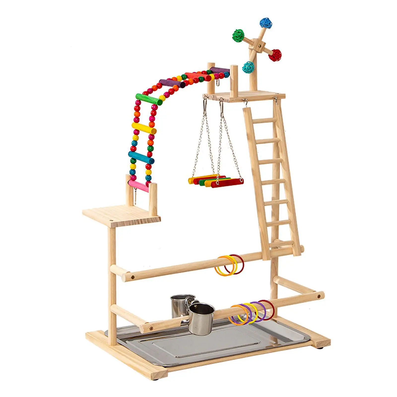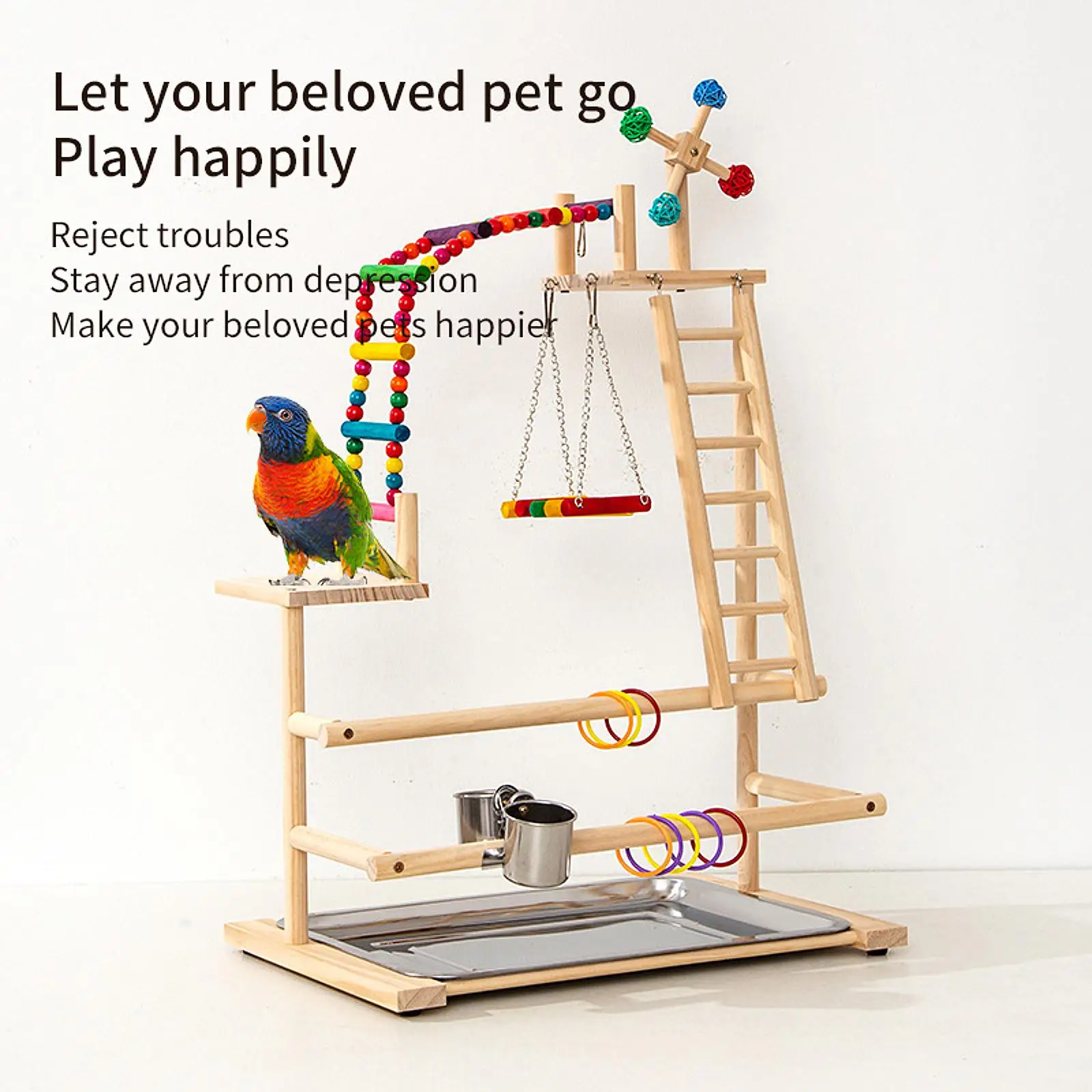 【Fomenta el ejercicio de juego】 Una divertida escalada y descanso para los pájaros, manteniéndolos activos. El parque infantil para pájaros con percha resistente ofrece un espacio seguro para jugar y hacer ejercicio.