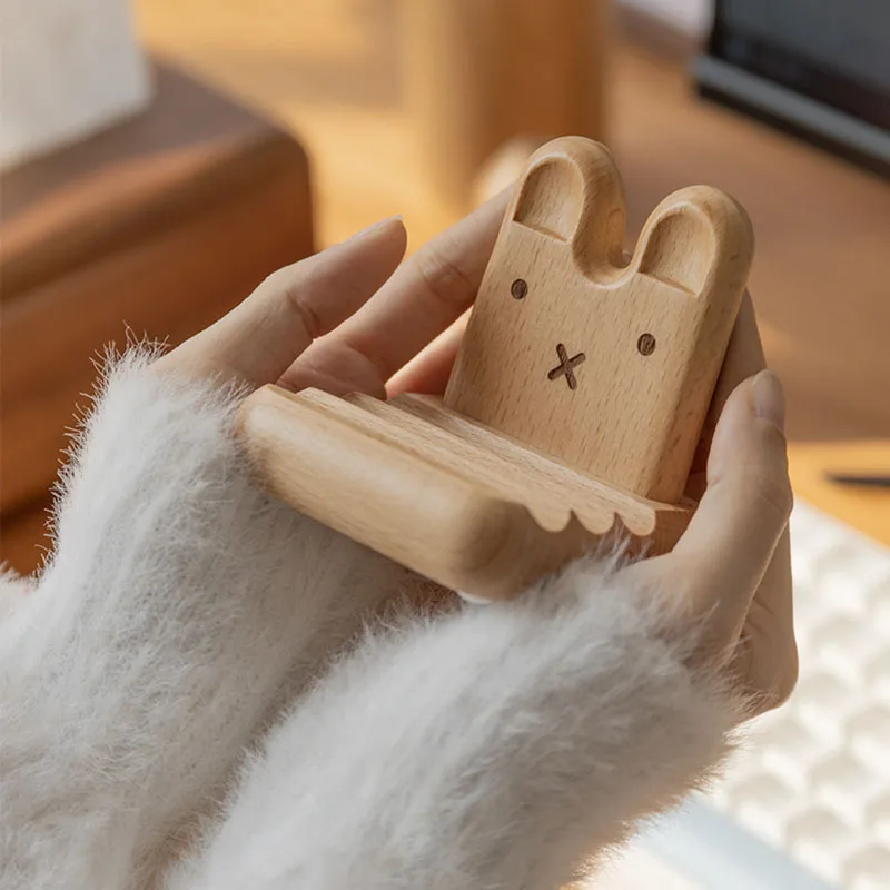 Soporte de madera para tableta y teléfono con conejo, soporte de escritorio Tatami, decoración creativa de madera, accesorio multifuncional para silla