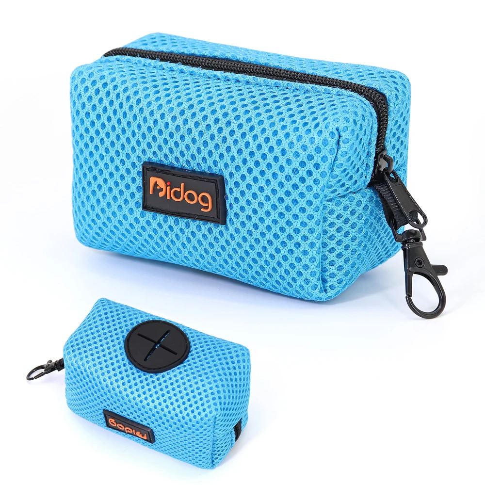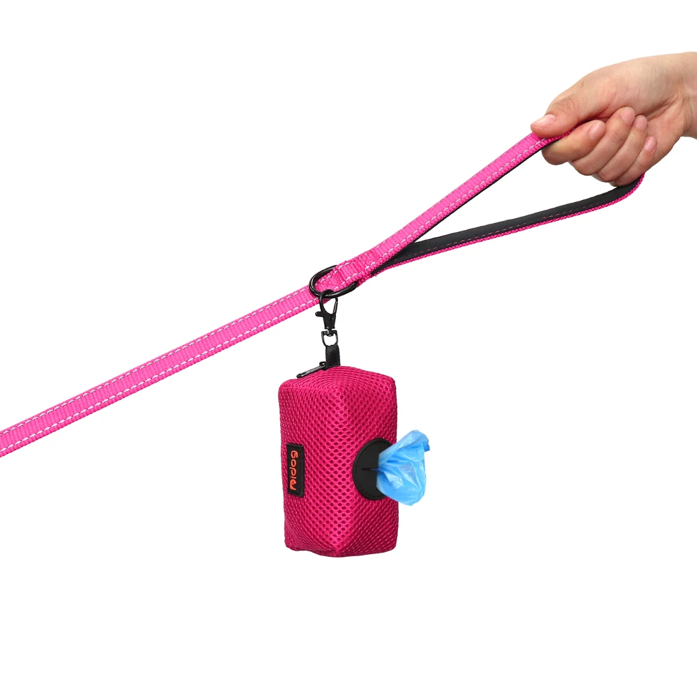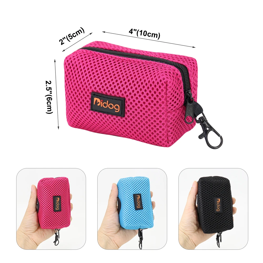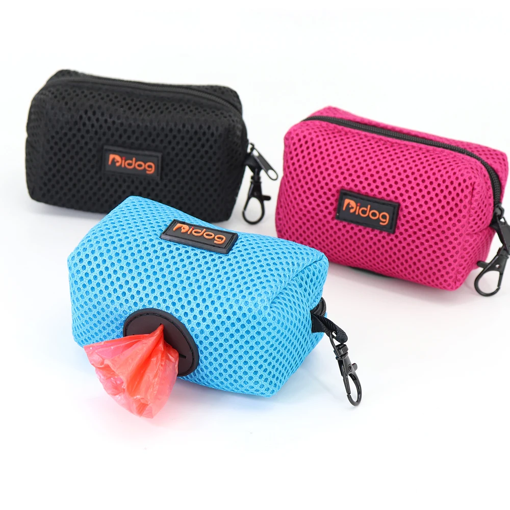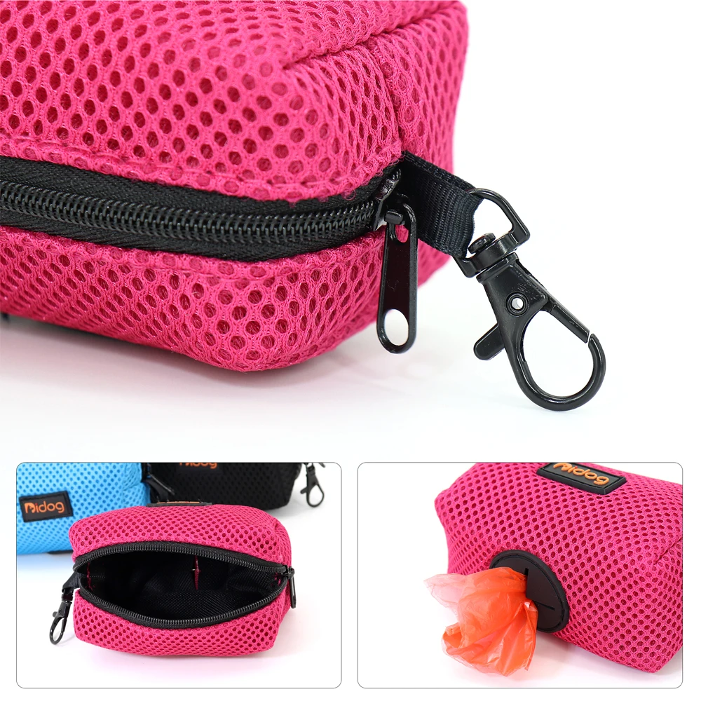Soporte de malla para bolsas de residuos de excrementos de perro, dispensador de bolsas de basura con correa para mascotas, estuche portador, accesorios para mascotas