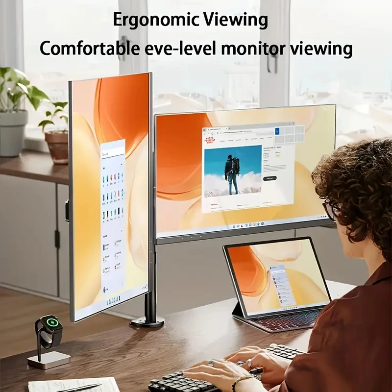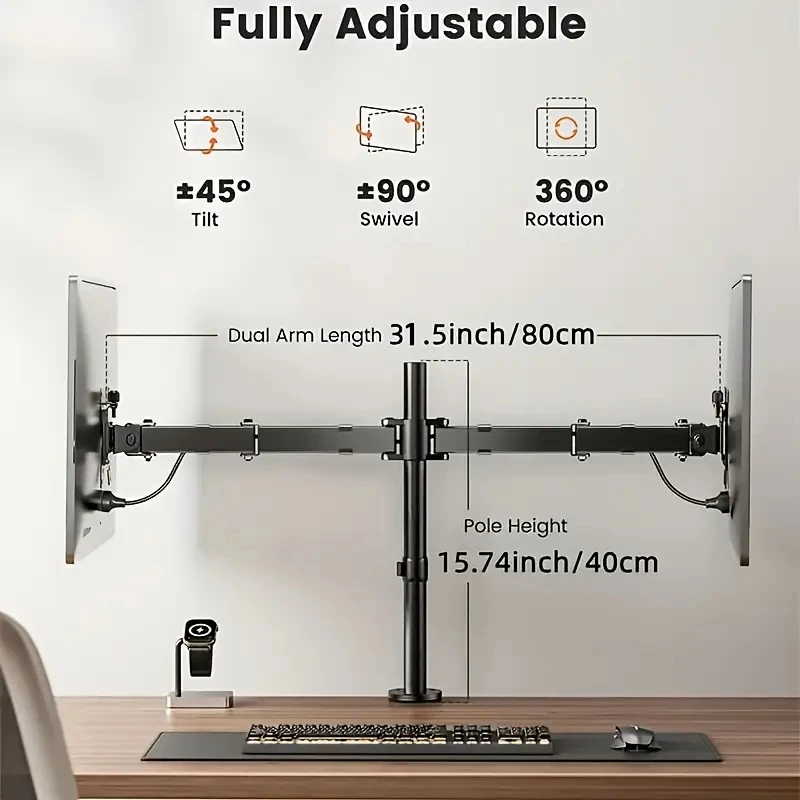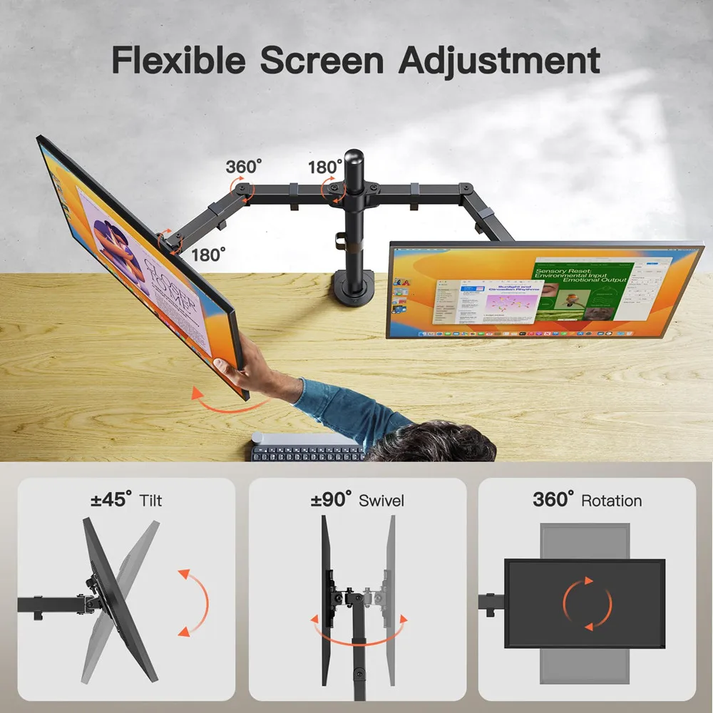 Soporte de escritorio para monitor, brazo de monitor dual totalmente ajustable para 2 pantallas de computadora de hasta 30 pulgadas, soporte de monitor con base de abrazadera para escritorio