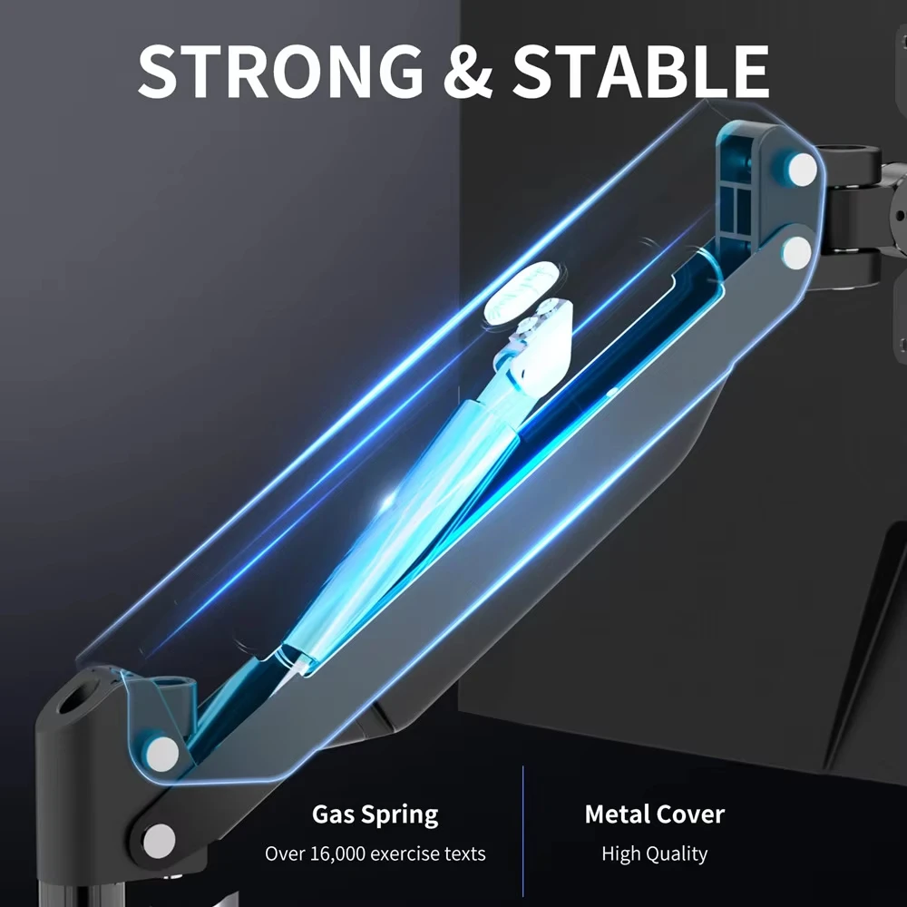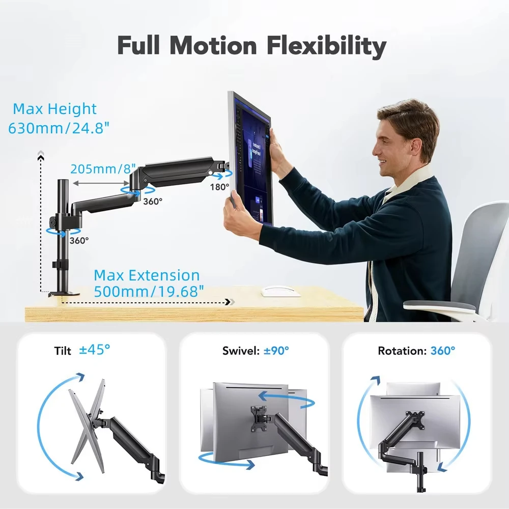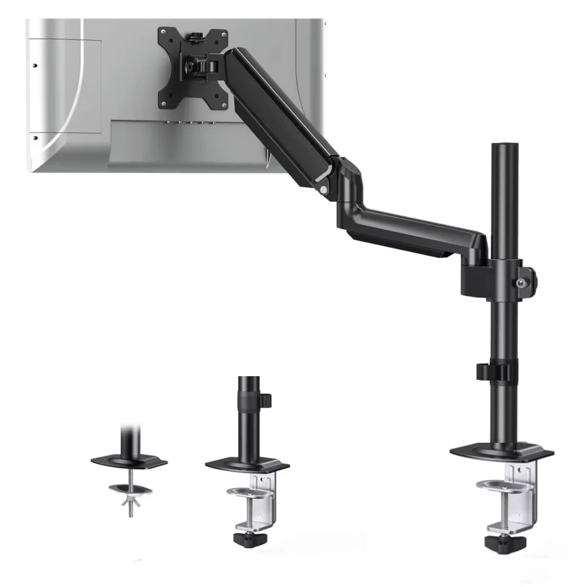 El soporte de monitor único se adapta a una pantalla de 13-32", altura ajustable, resorte de gas de movimiento completo, brazo extensible, soporte VESA 75x75/100x100mm